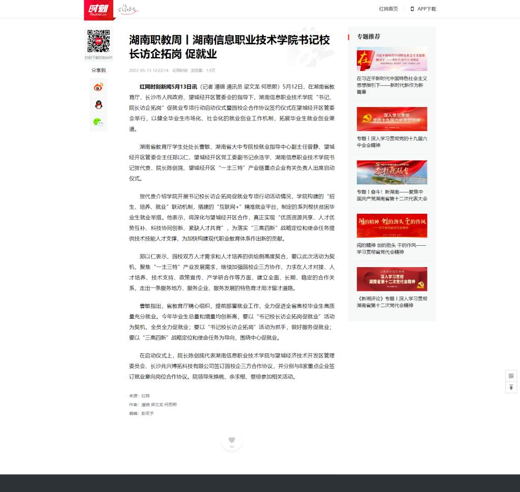 5月13日,红网时刻发布《湖南职教周丨beat365官方网站书记校长访企拓岗 促就业》