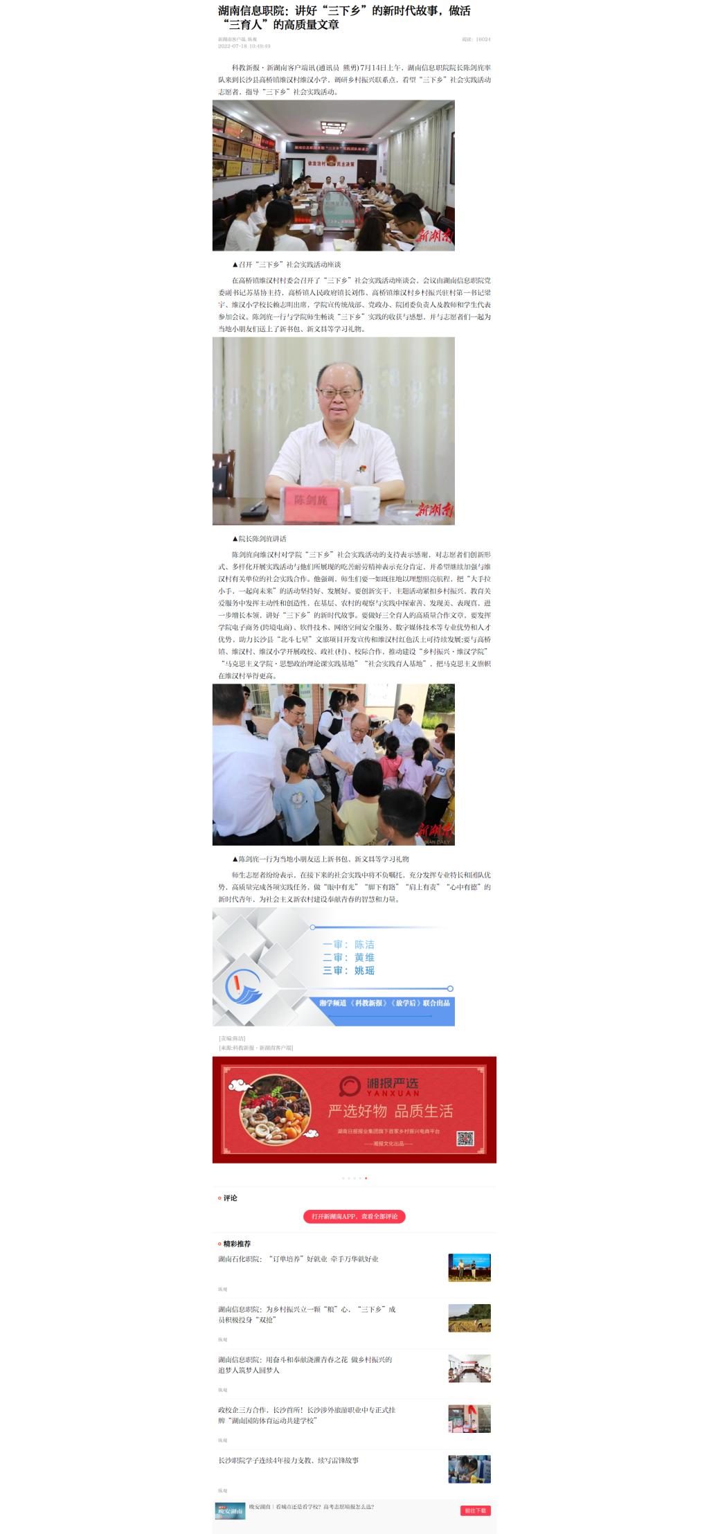 7月18日,新湖南发布《湖南信息职院:讲好“三下乡”的新时代故事,做活“三育人”的高质量文章》