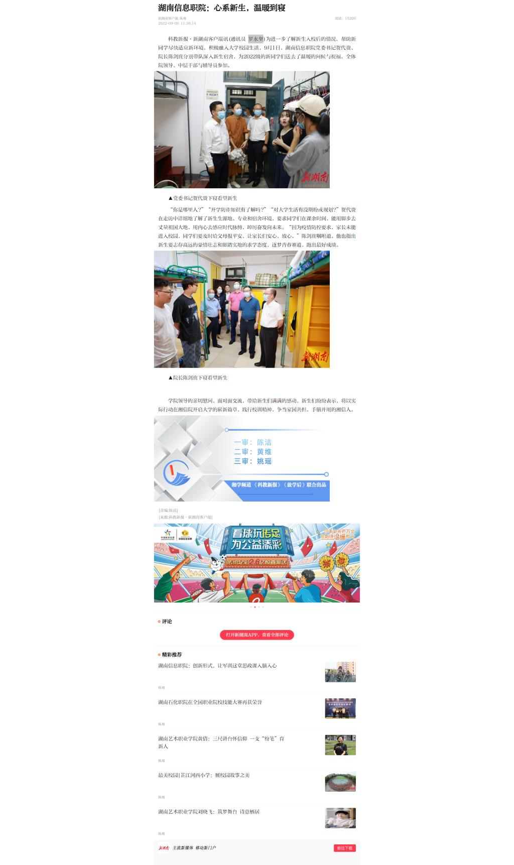 9月6日,新湖南发布《湖南信息职院:心系新生,温暖到寝》