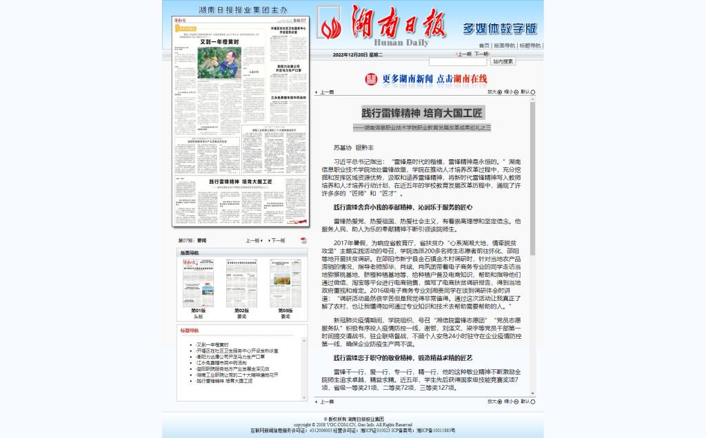 12月20日,湖南日报发布《践行雷锋精神 培育大国工匠——beat365官方网站职业教育发展改革成果巡礼之三》