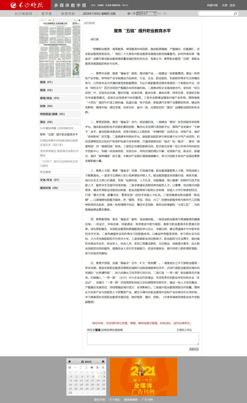1月5日,长沙晚报发布《聚焦“五链”提升职业教育水平》