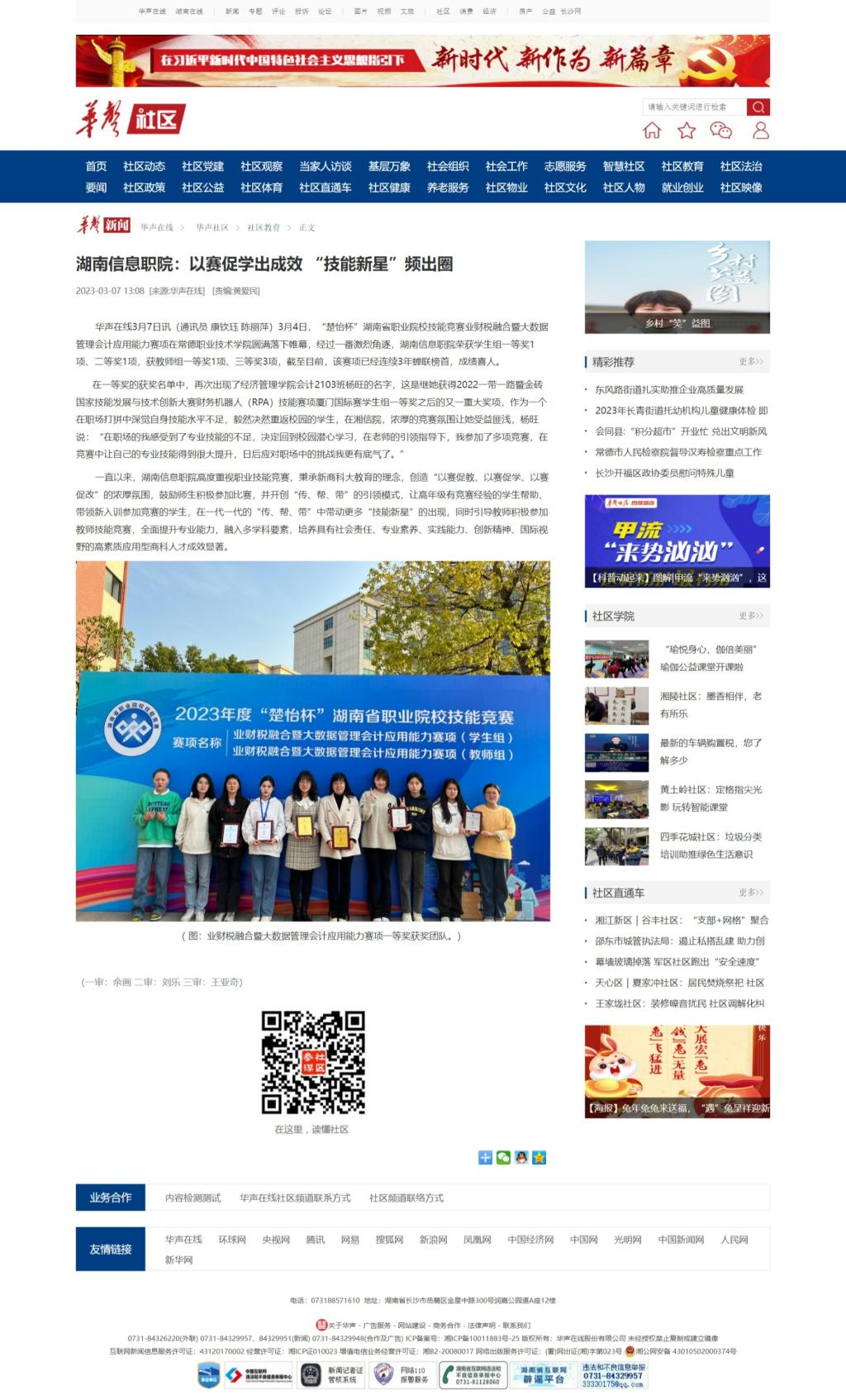 3月7日,华声在线发布《湖南信息职院:以赛促学出成效 “技能新星”频出圈》