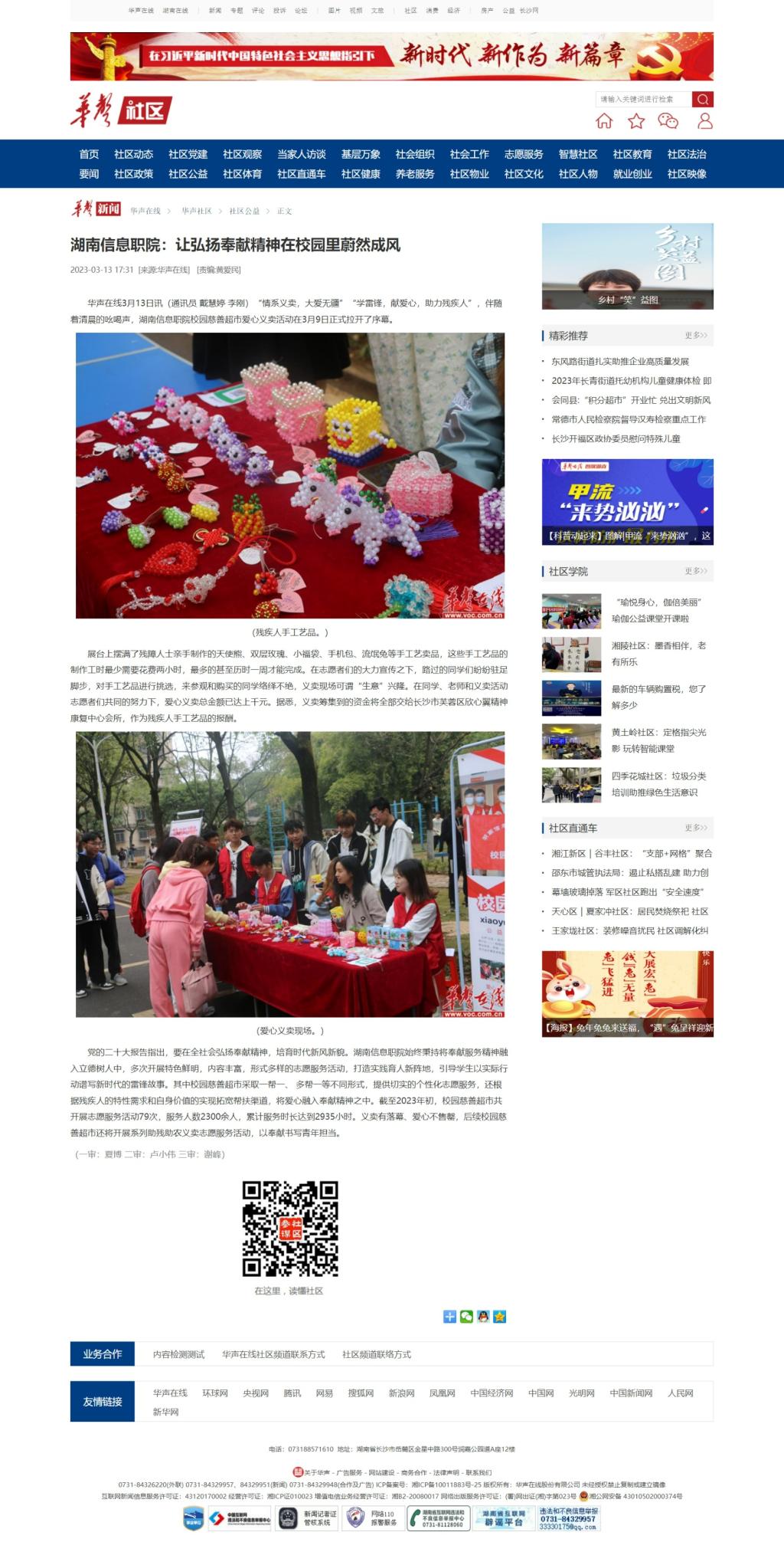 3月13日,华声在线发布《湖南信息职院:让弘扬奉献精神在校园里蔚然成风》