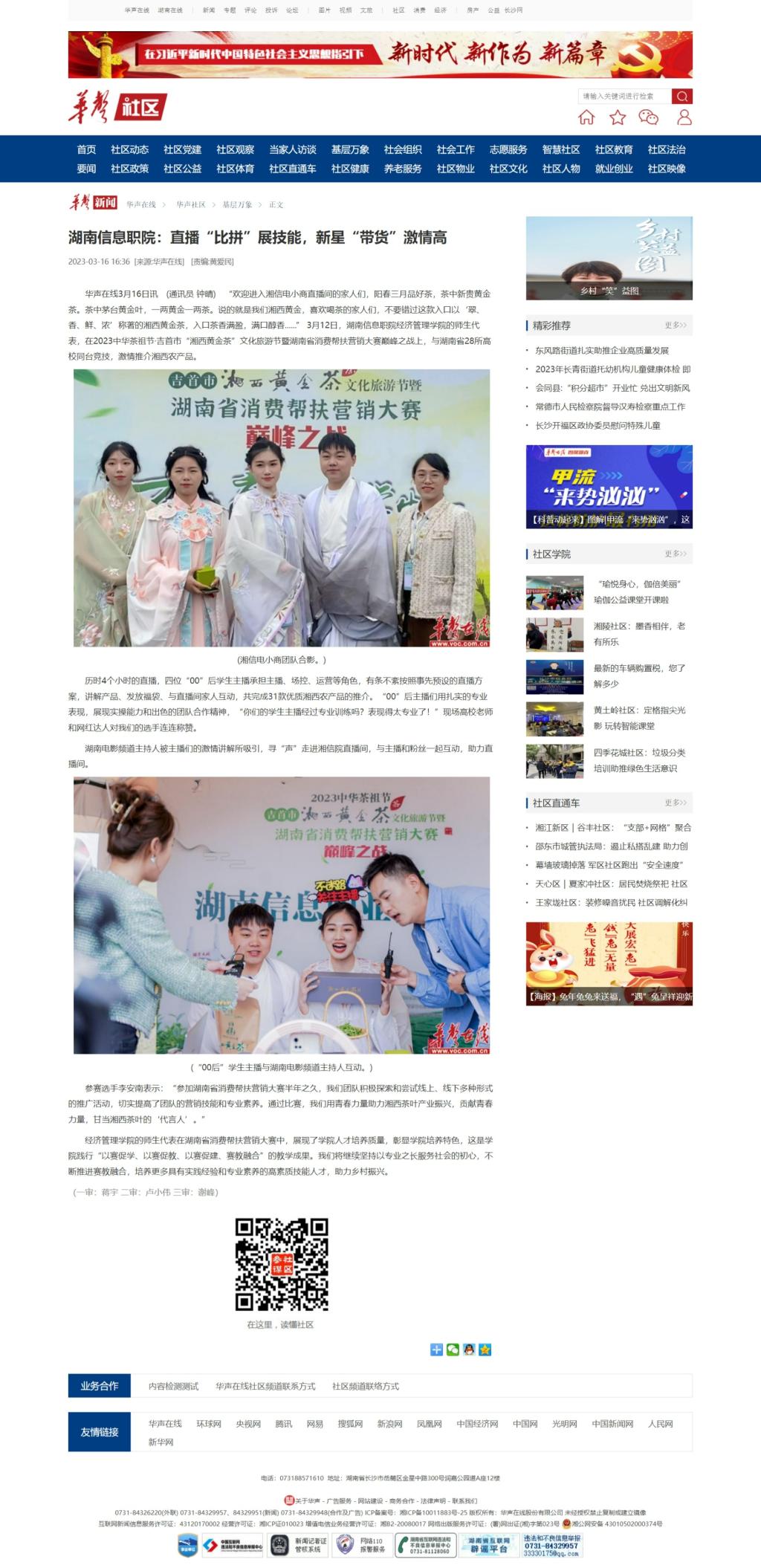 3月16日,华声在线发布《湖南信息职院:直播“比拼”展技能,新星“带货”激情高》