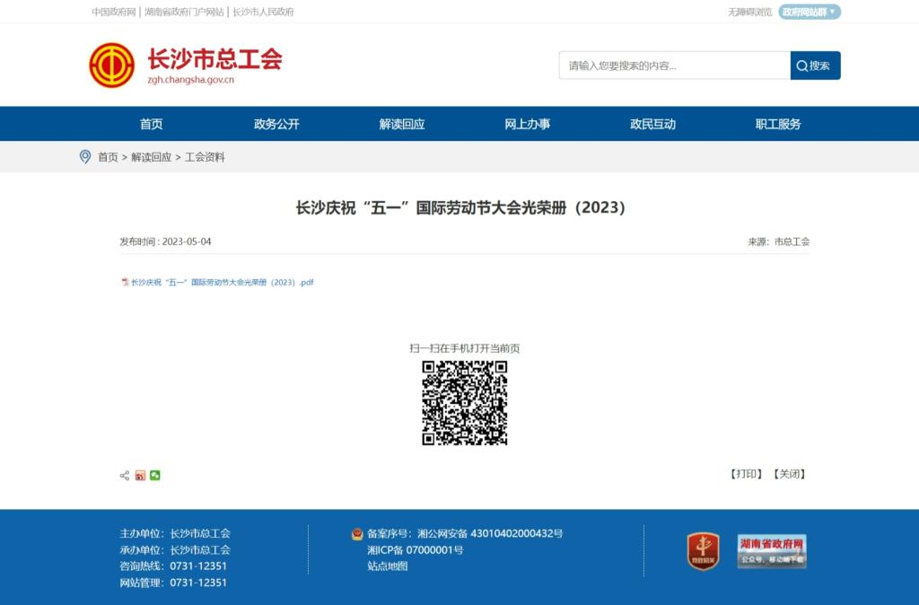 5月4日,长沙市总工会长发布《沙庆祝“五一”国际劳动节大会光荣册(2023)》