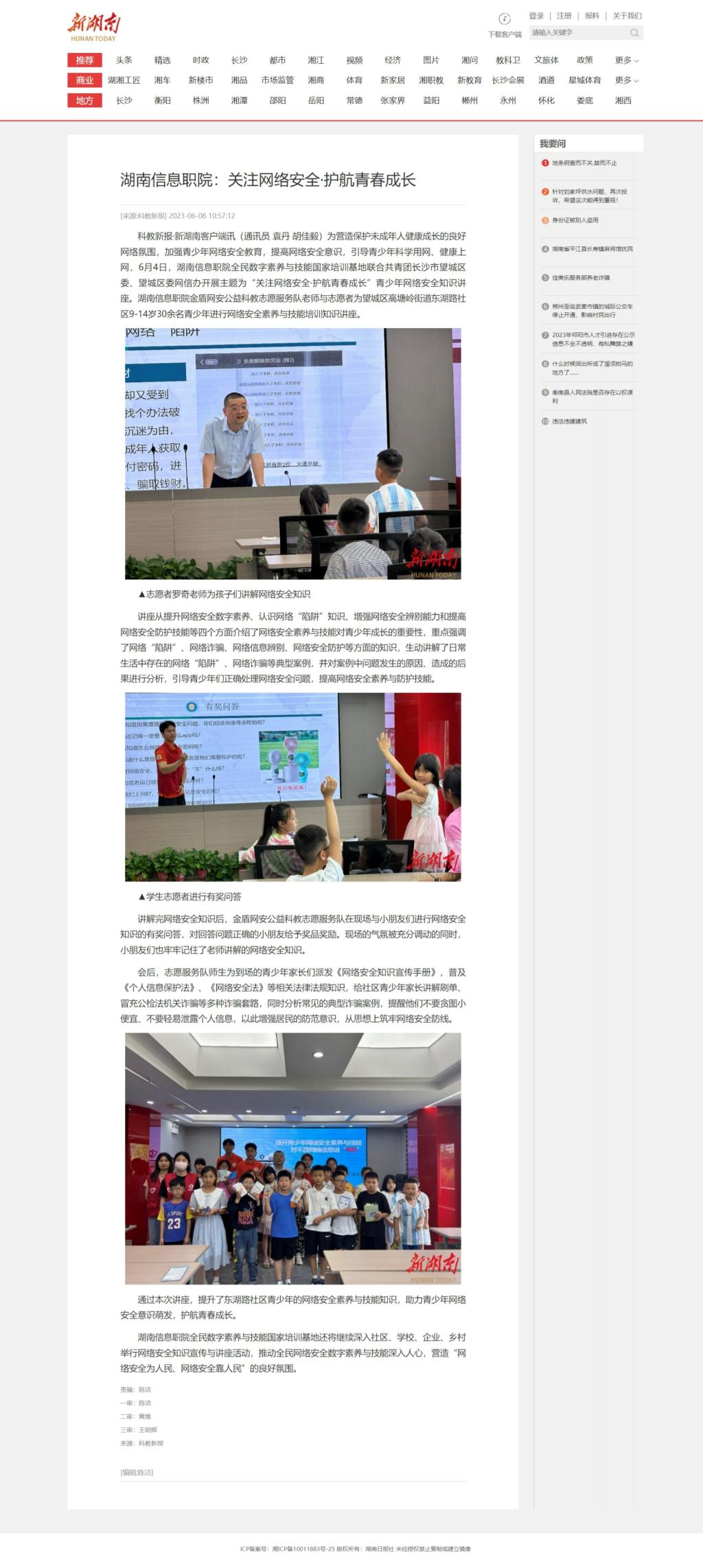 6月8日,新湖南发布《湖南信息职院:关注网络安全·护航青春成长》