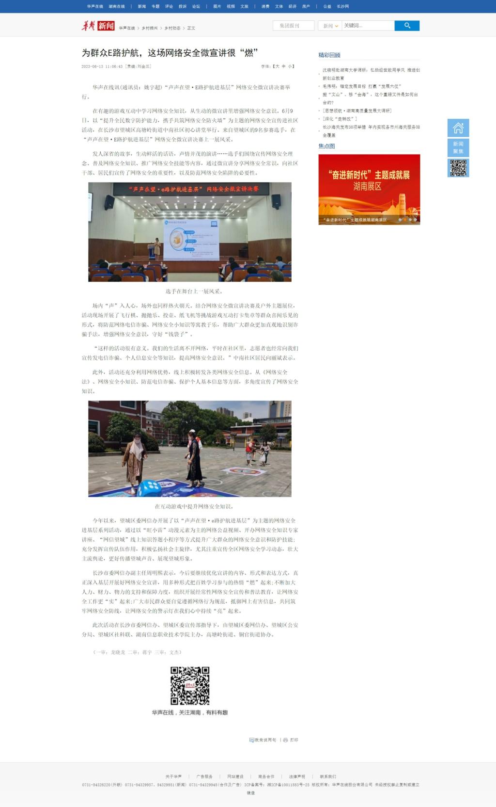 6月13日,华声在线发布《为群众E路护航,这场网络安全微宣讲很“燃”》
