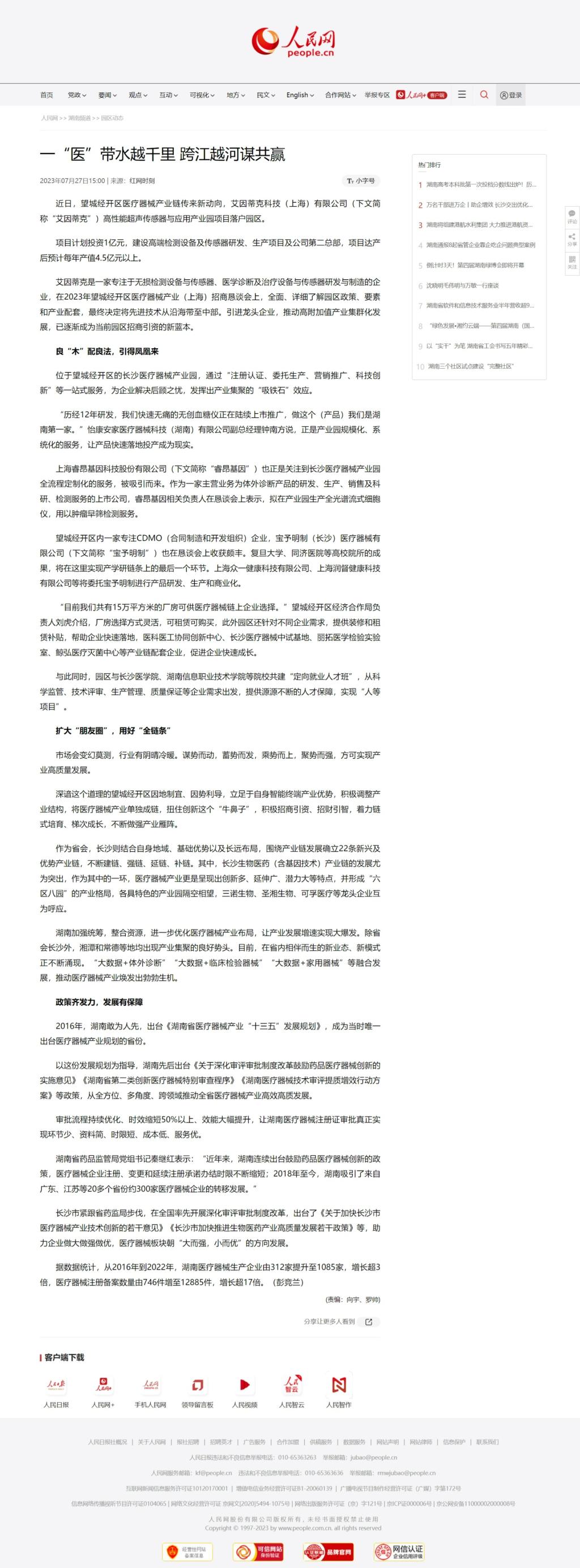 7月27日,人民网发布《一“医”带水越千里 跨江越河谋共赢》