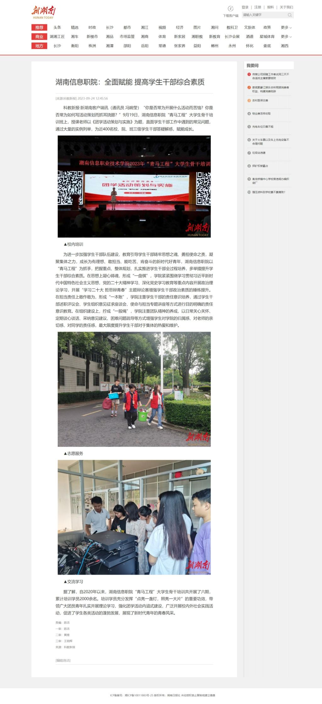 9月24日,新湖南发布《湖南信息职院:全面赋能 提高学生干部综合素质》