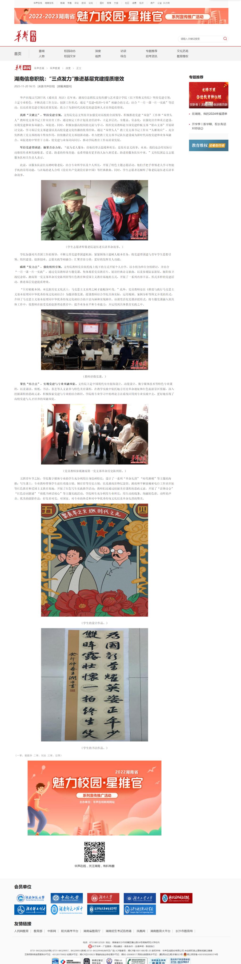 11月20日,华声在线发布《湖南信息职院:“三点发力”推进基层党建提质增效》