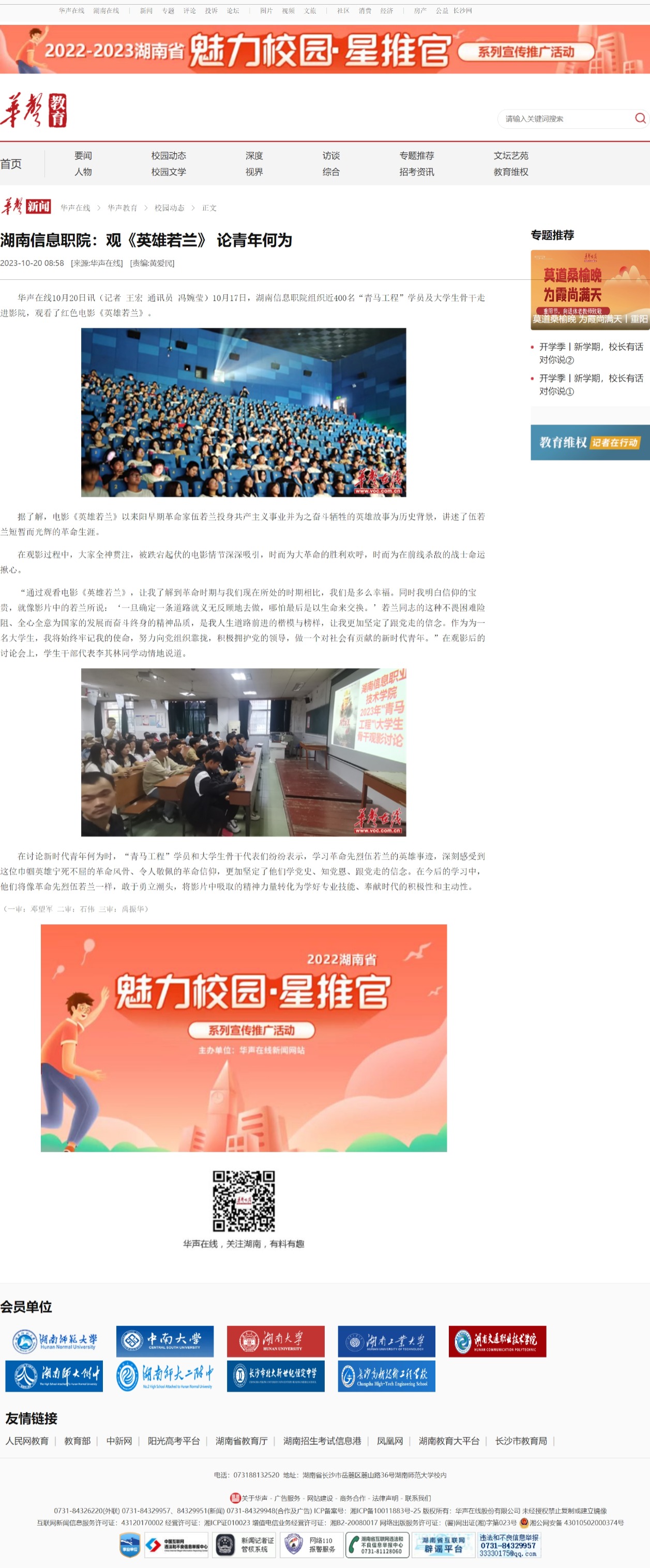 10月20日,华声在线发布《湖南信息职院观《英雄若兰》 论青年何为》