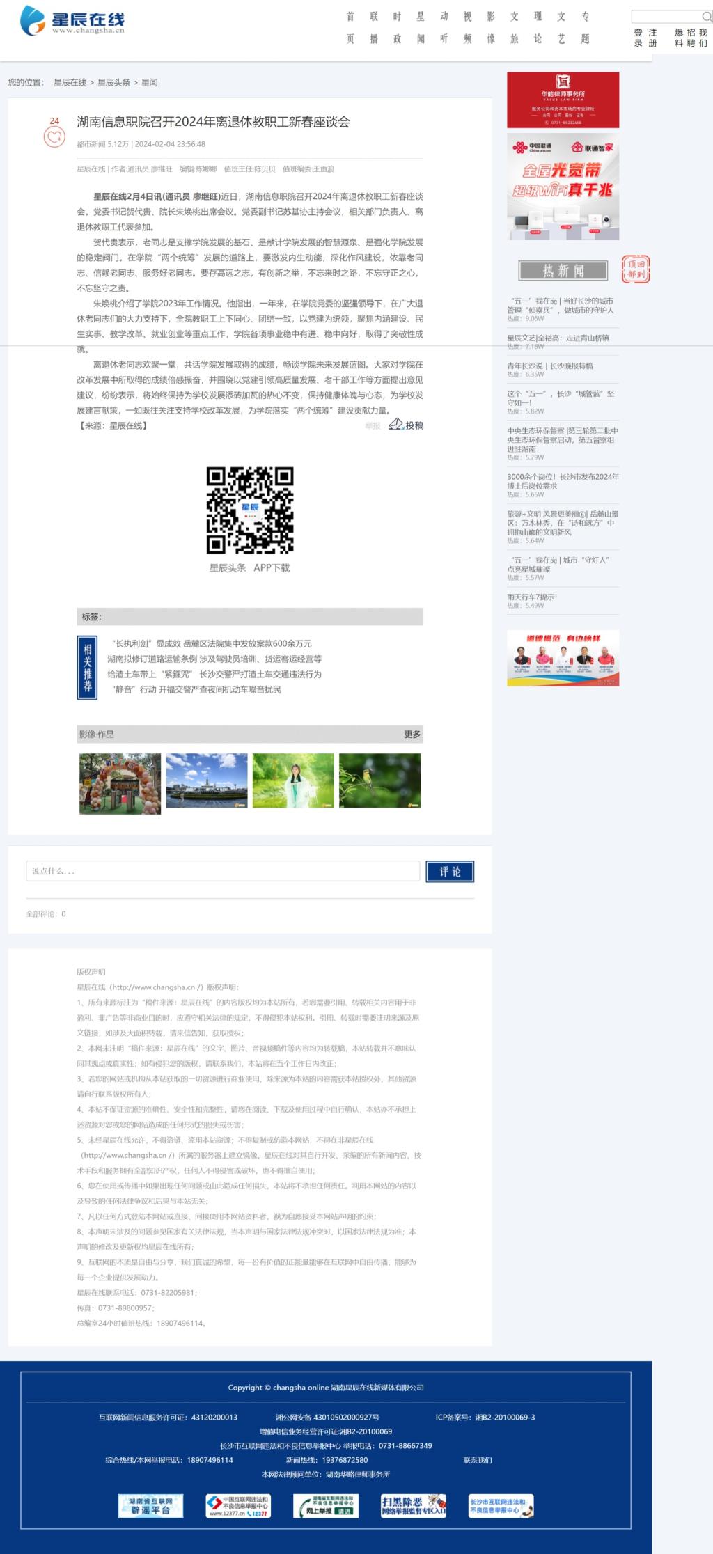 2月4日,星辰在线发布《湖南信息职院召开2024年离退休教职工新春座谈会》