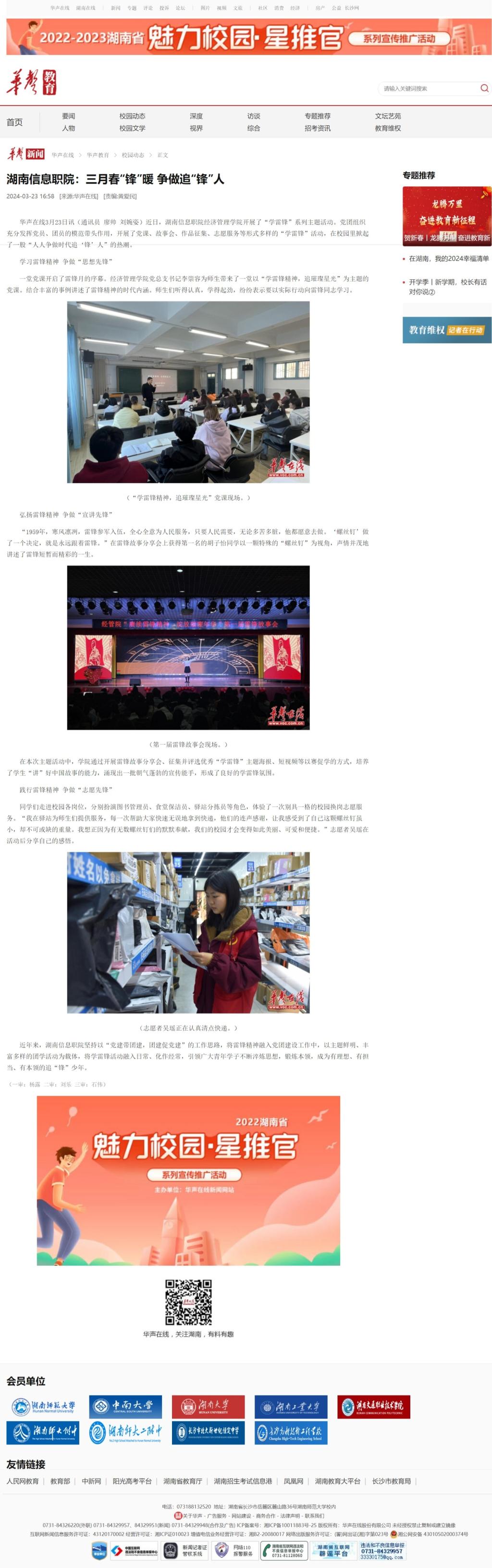 3月23日,华声在线发布《湖南信息职院:三月春“锋”暖 争做追“锋”人》