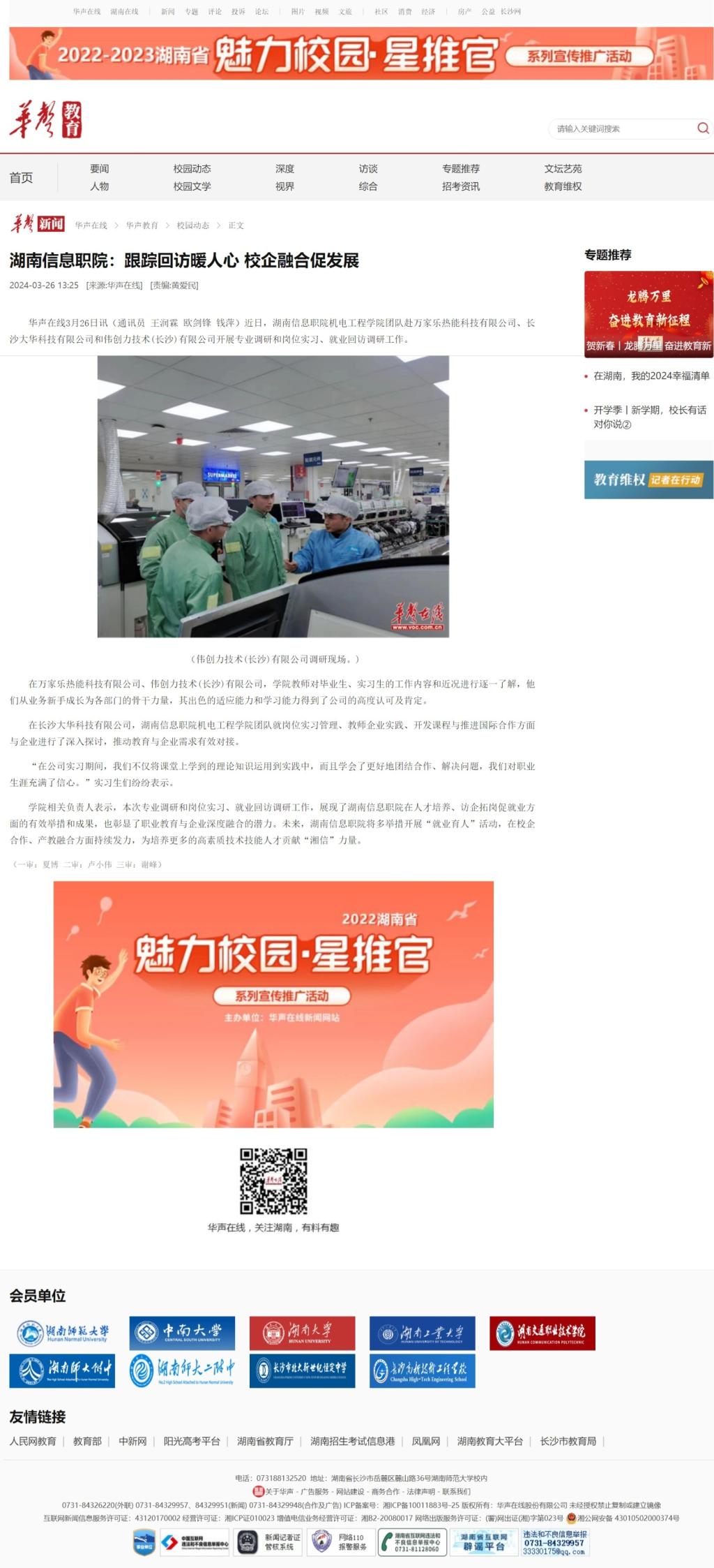 3月26日,华声在线发布《湖南信息职院:跟踪回访暖人心 校企融合促发展》