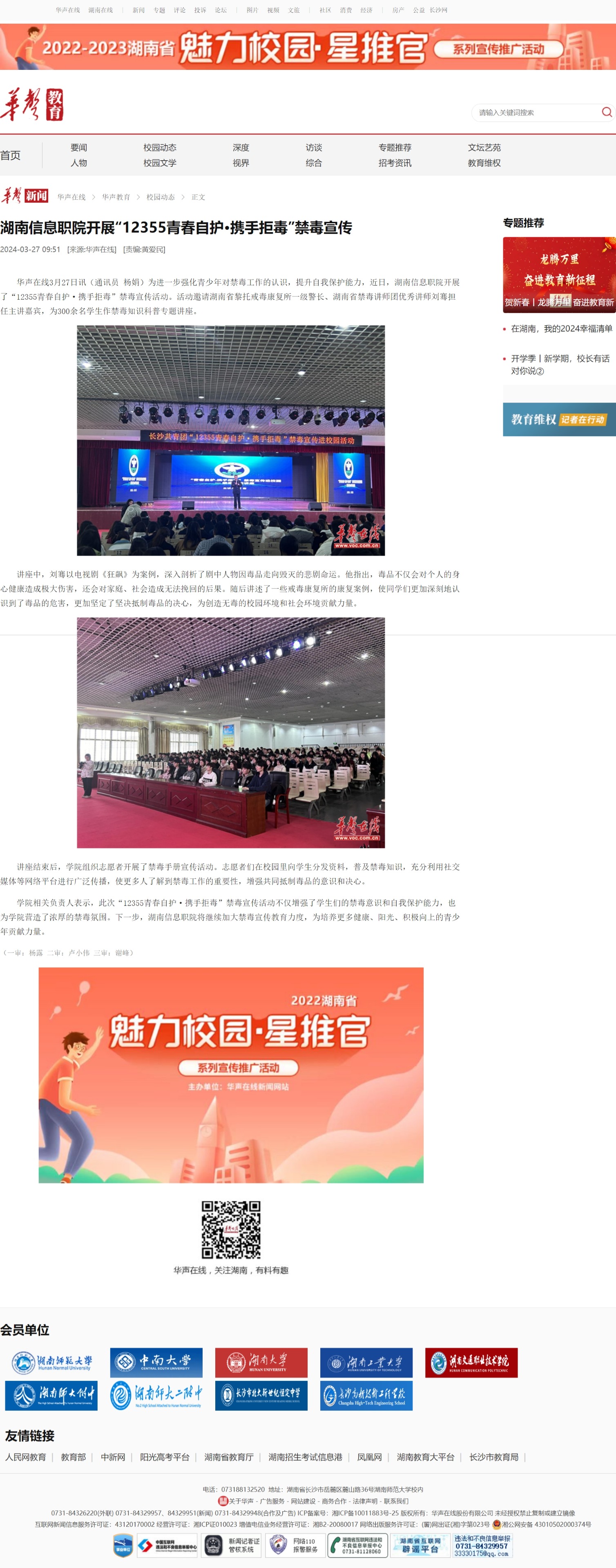 3月27日,华声在线发布《湖南信息职院开展“12355青春自护·携手拒毒”禁毒宣传》