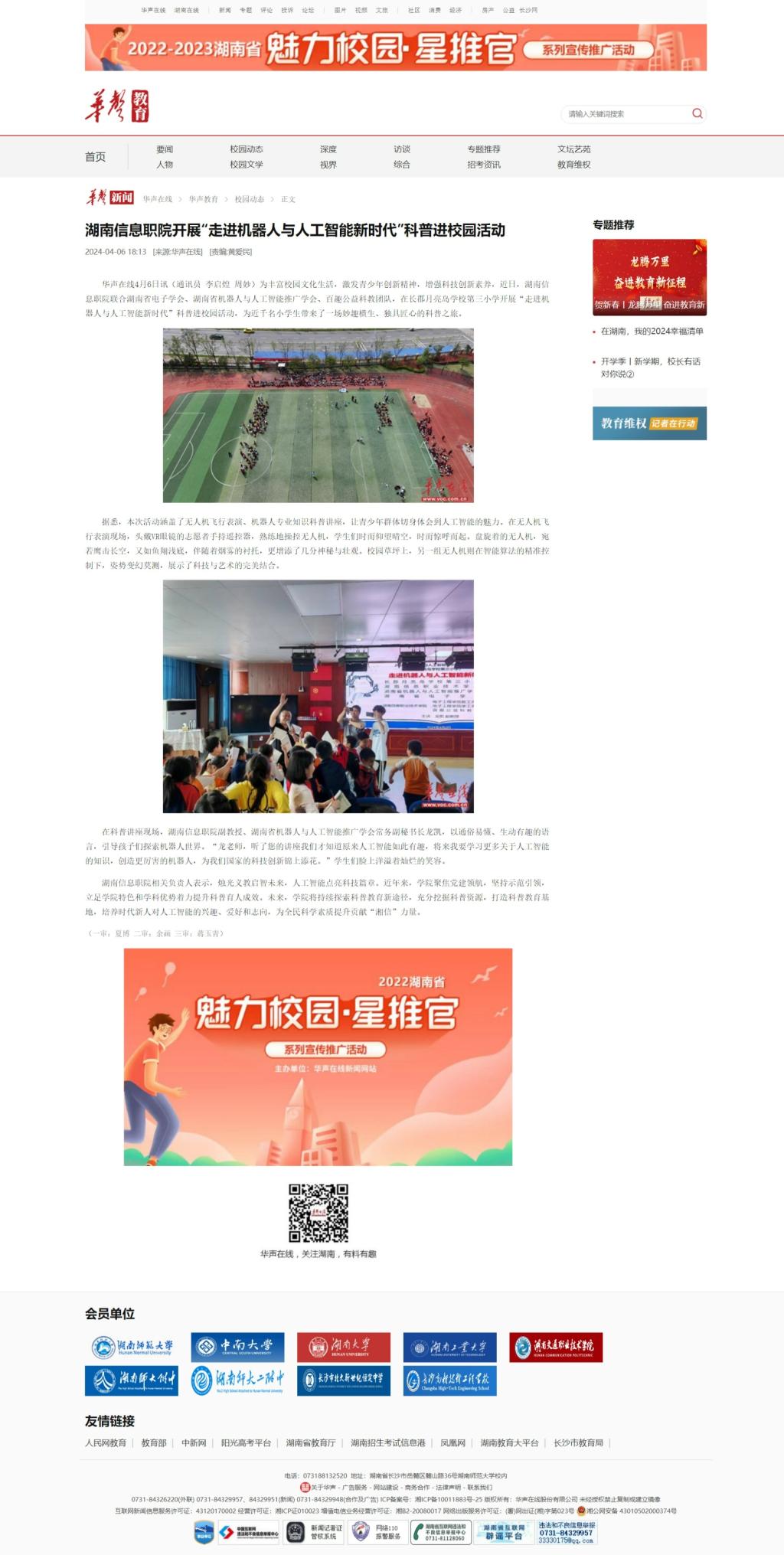 4月6日,华声在线发布《湖南信息职院开展“走进机器人与人工智能新时代”科普进校园活动》