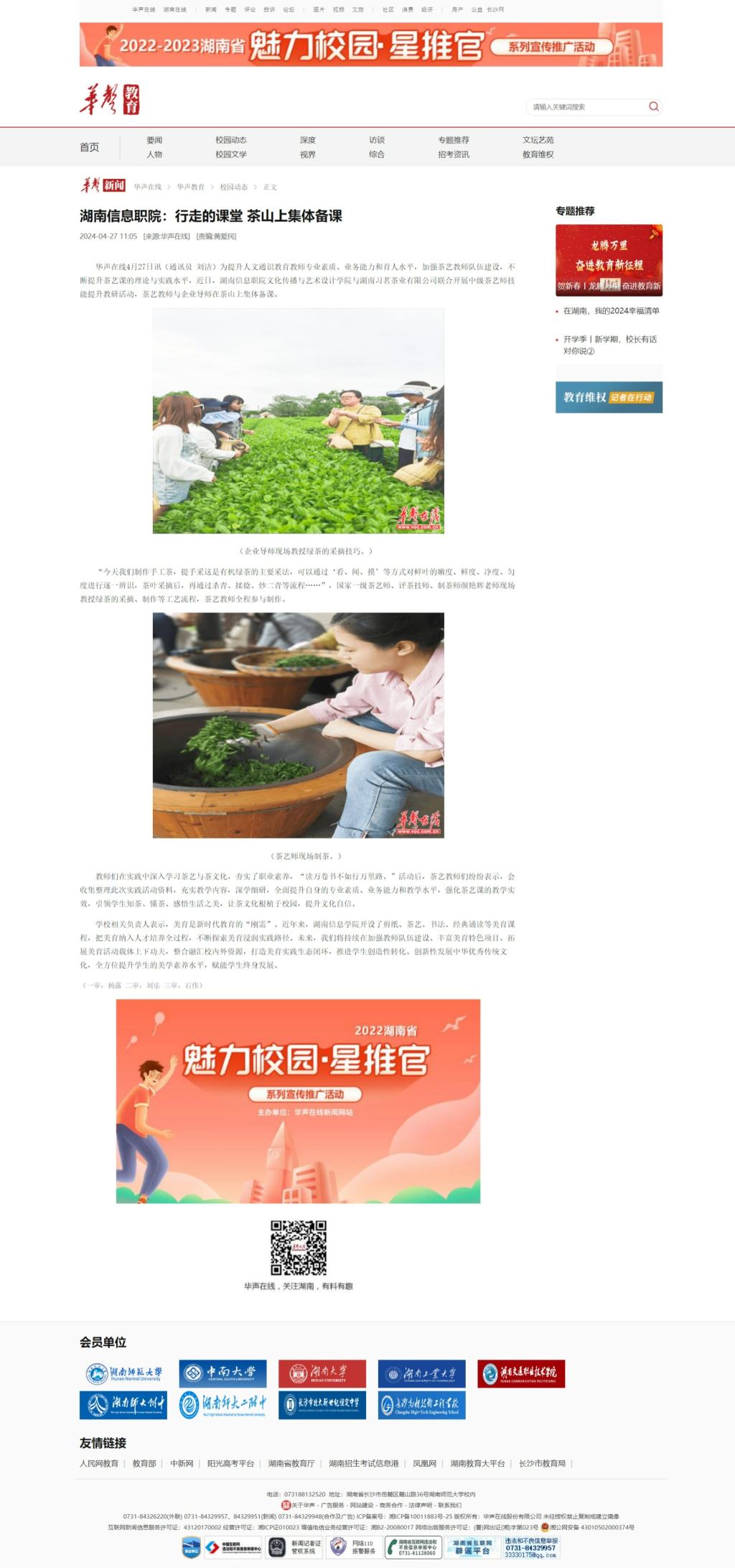 4月27日,华声在线发布《湖南信息职院:行走的课堂 茶山上集体备课》