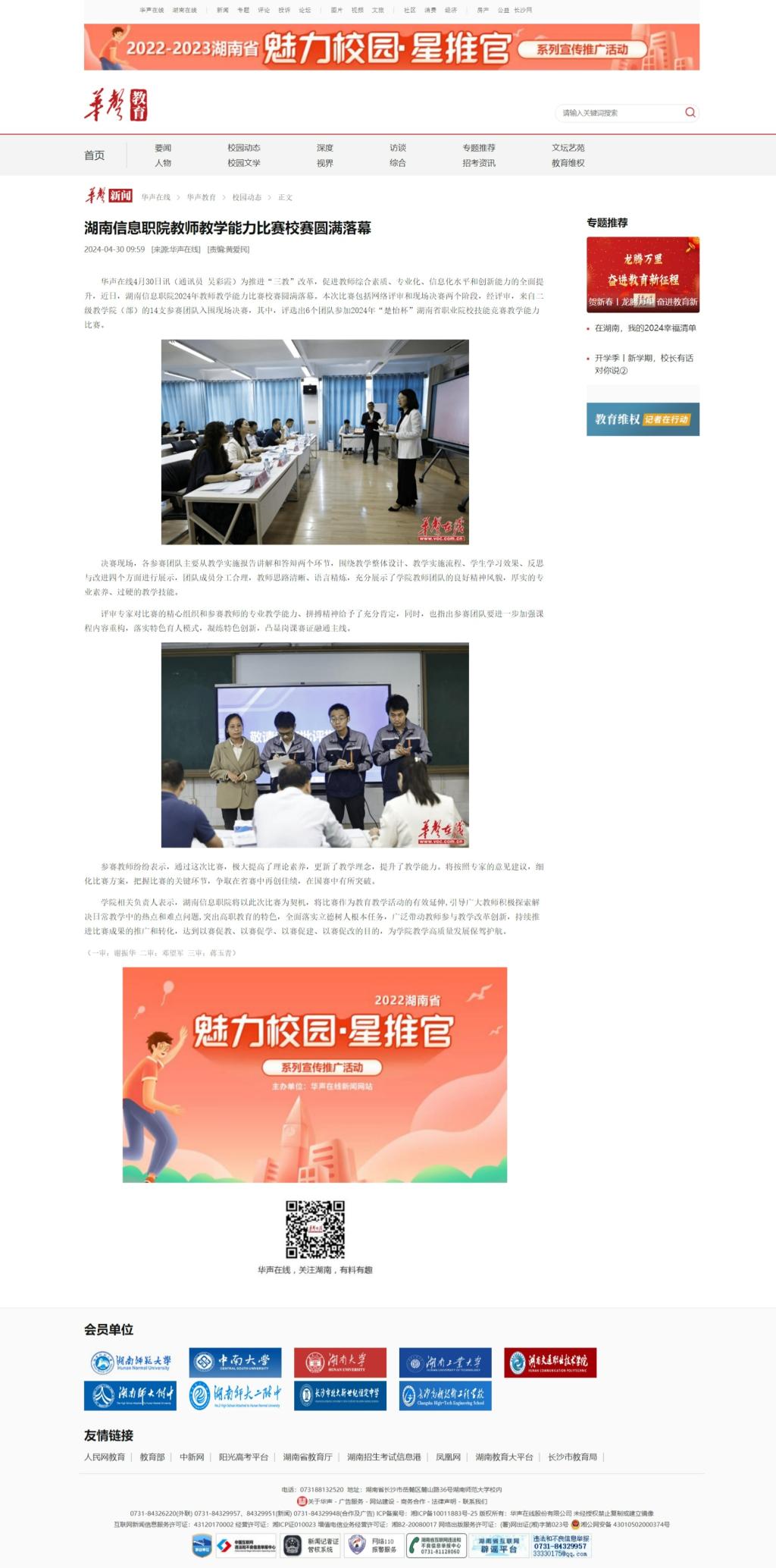 4月30日,华声在线发布《湖南信息职院教师教学能力比赛校赛圆满落幕》