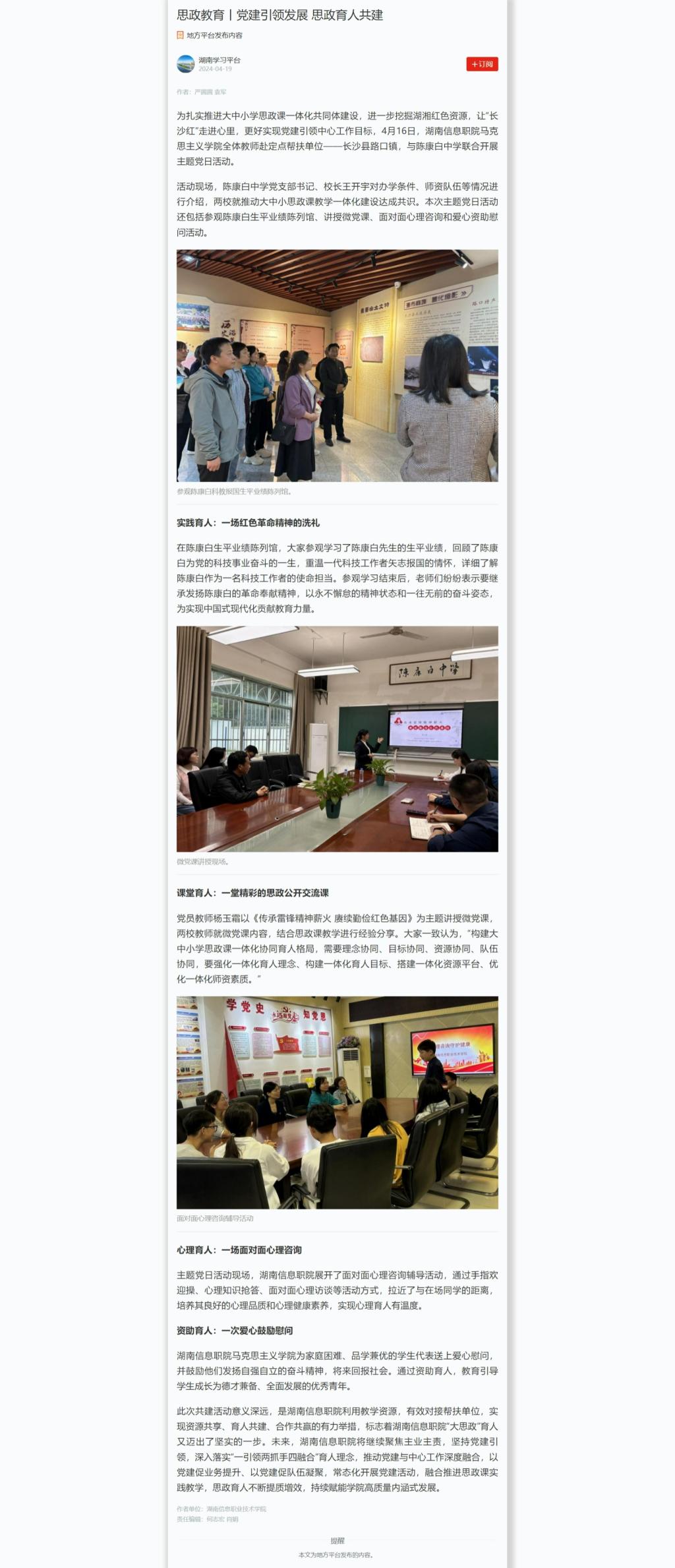 4月19日,学习强国发布《思政教育丨党建引领发展 思政育人共建》