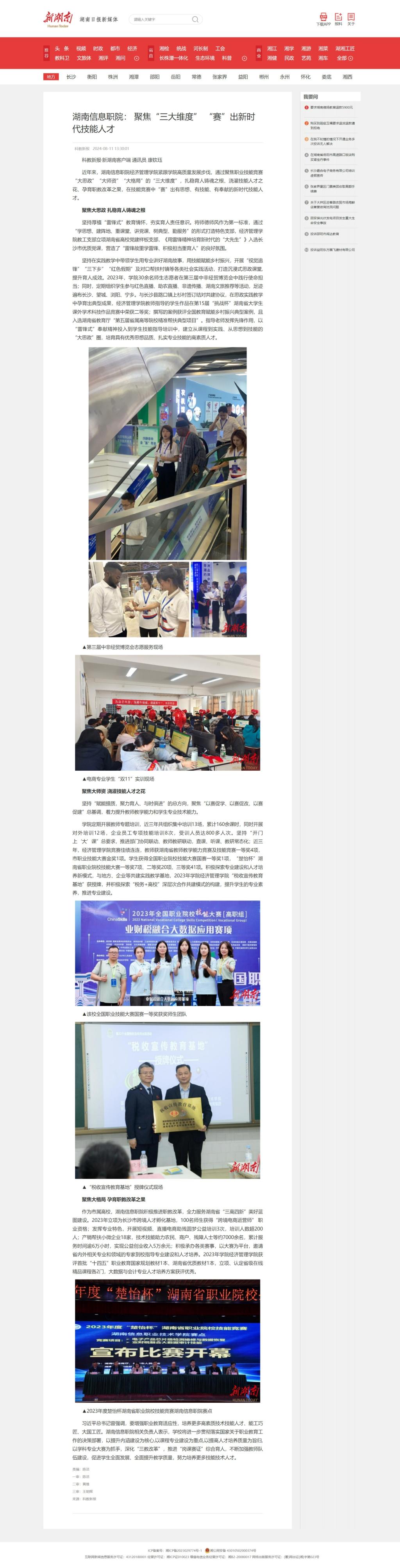 8月11日,新湖南发布《湖南信息职院: 聚焦“三大维度” “赛”出新时代技能人才》