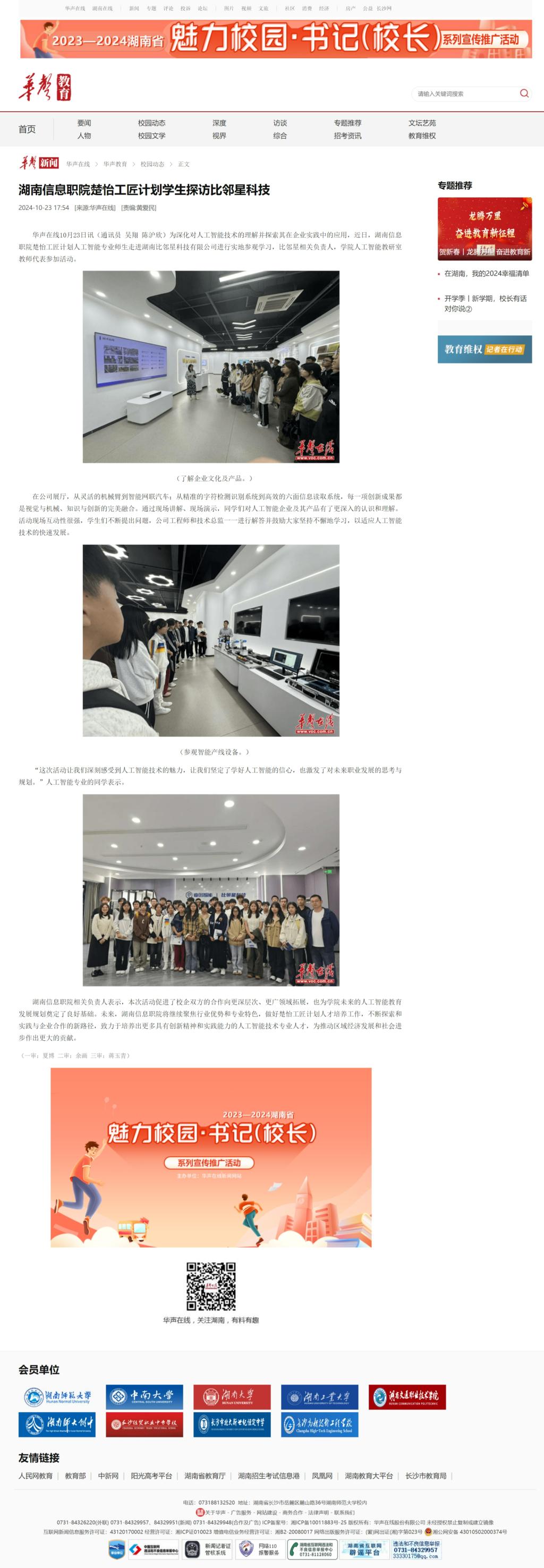 10月23日,华声在线发布《湖南信息职院楚怡工匠计划学生探访比邻星科技》