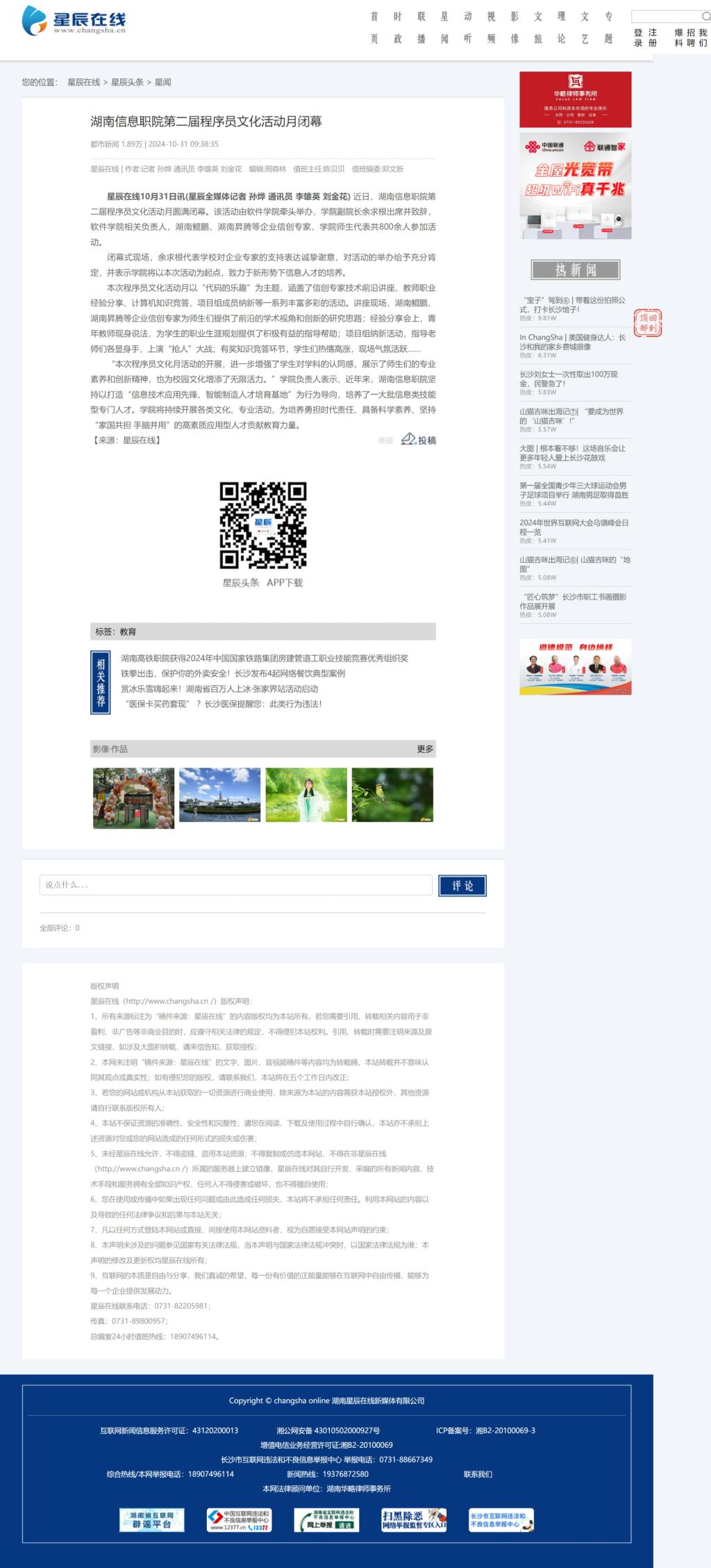10月31日,星辰在线发布《湖南信息职院第二届程序员文化活动月闭幕》