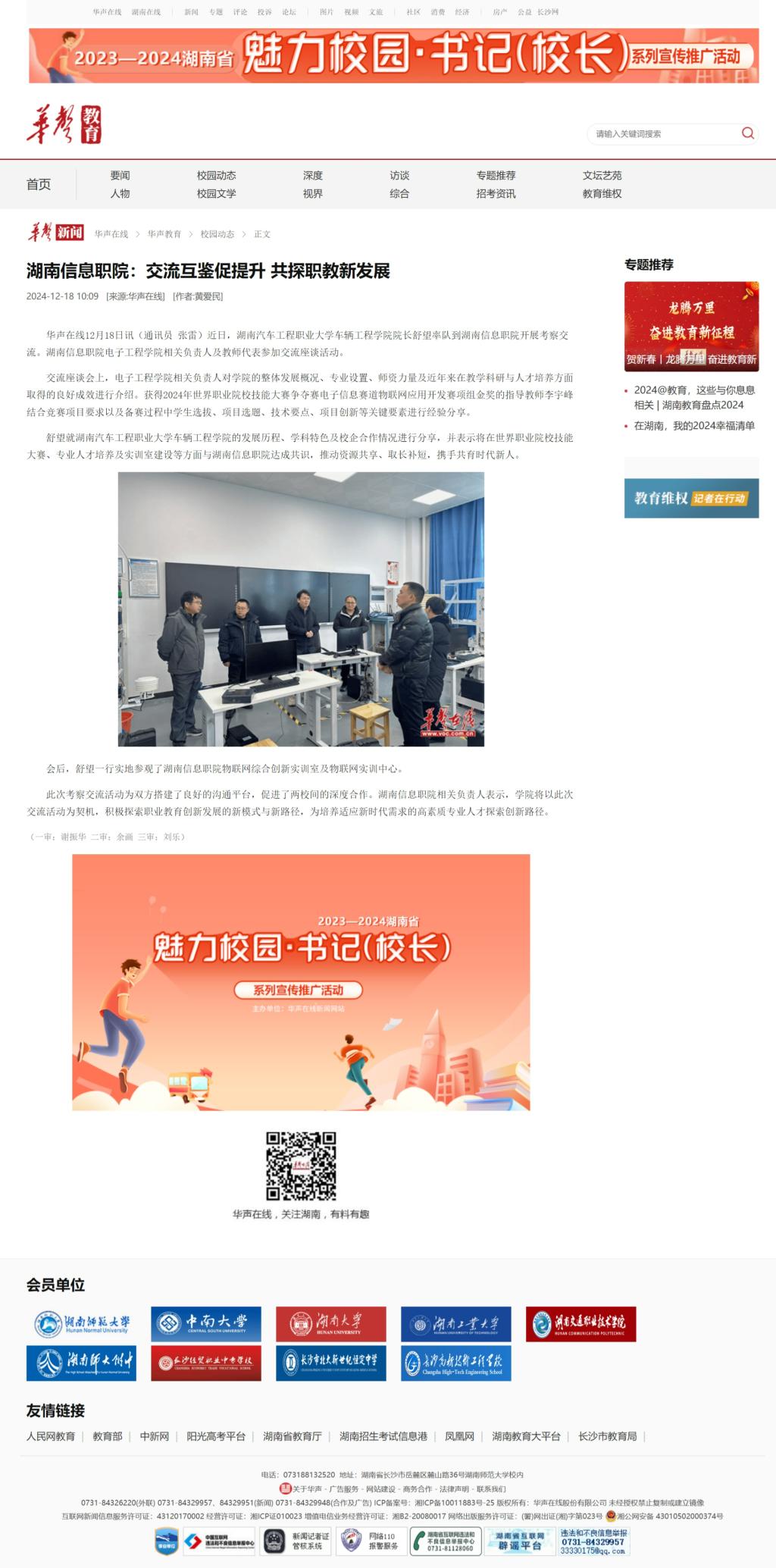 12月18日,华声在线发布《湖南信息职院:交流互鉴促提升 共探职教新发展》