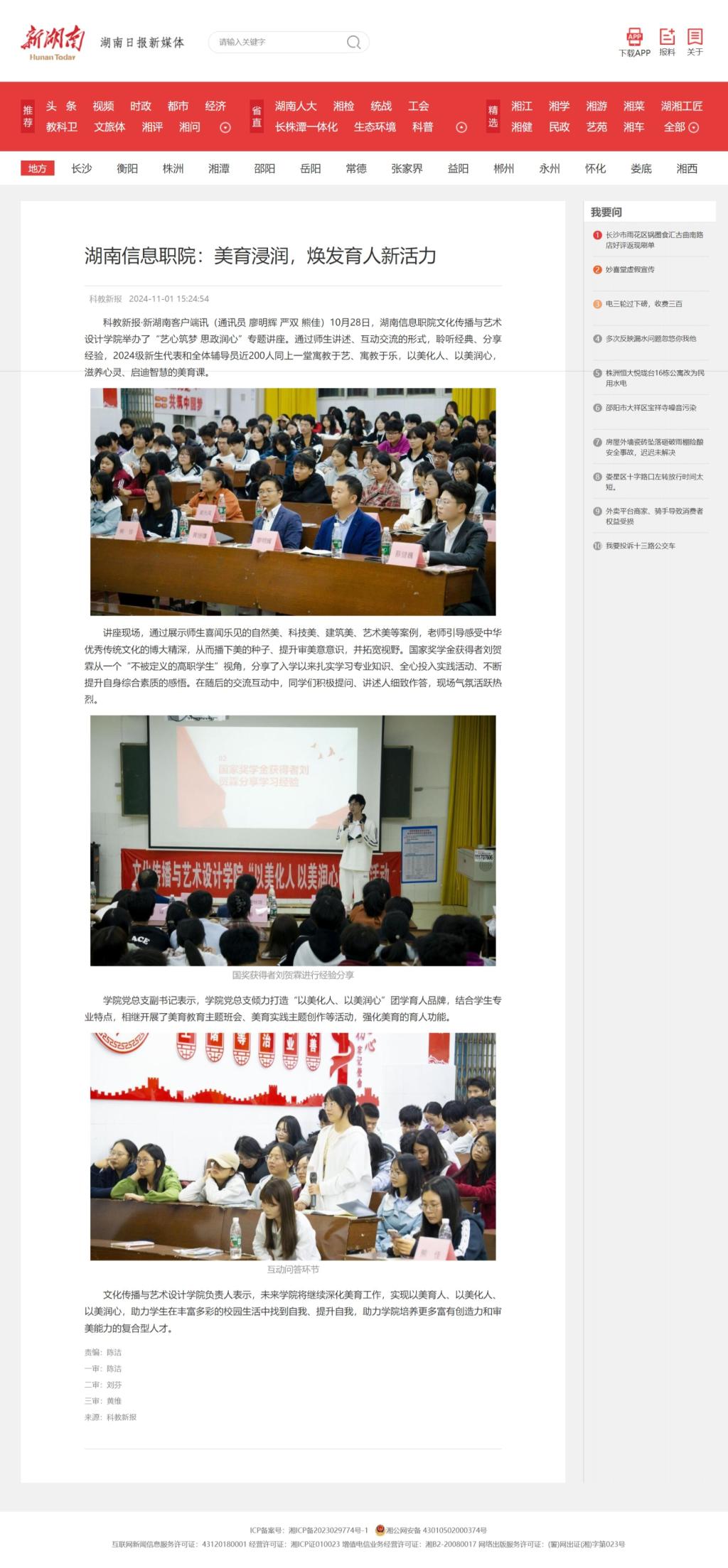 11月1日,新湖南发布《湖南信息职院:美育浸润,焕发育人新活力》
