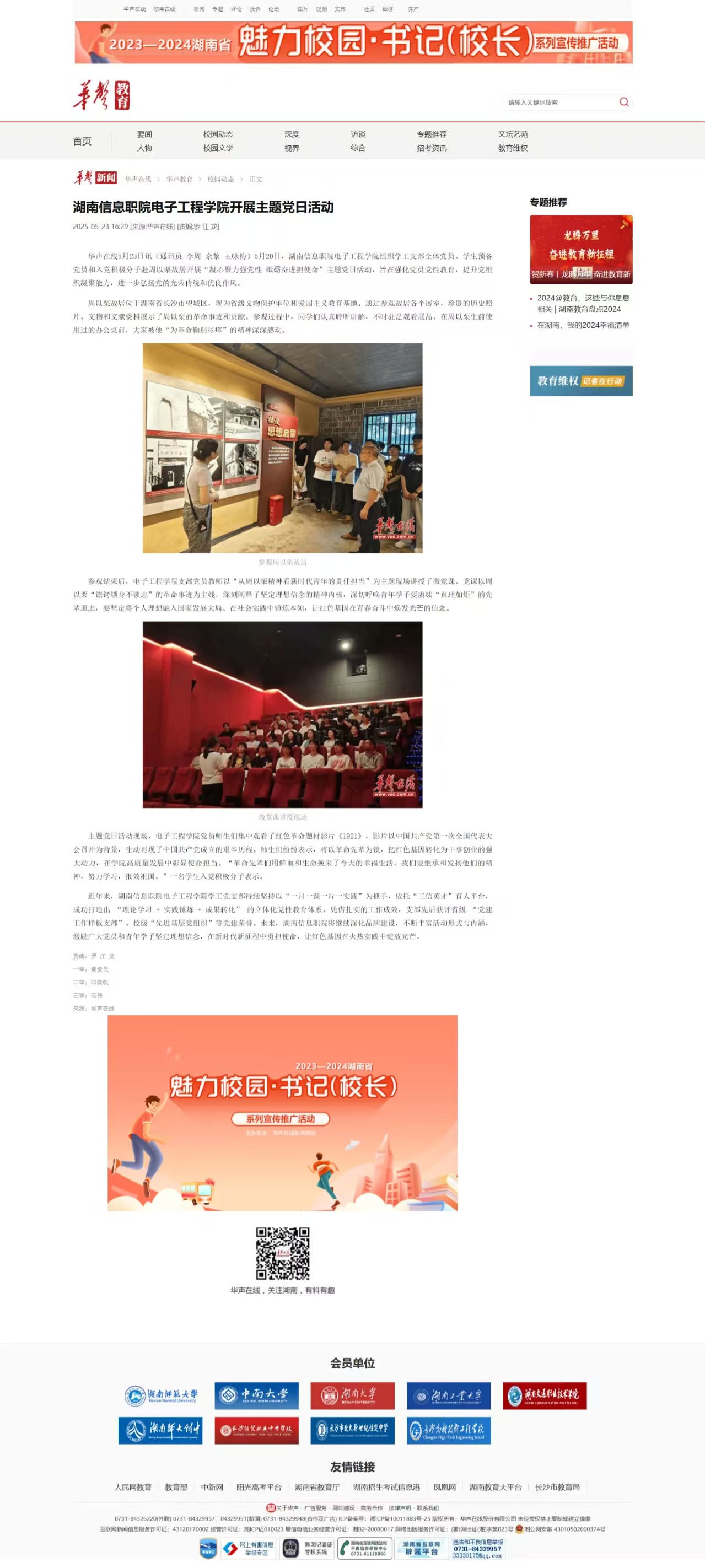 5月23日,华声在线发布《湖南信息职院电子工程学院开展主题党日活动》。