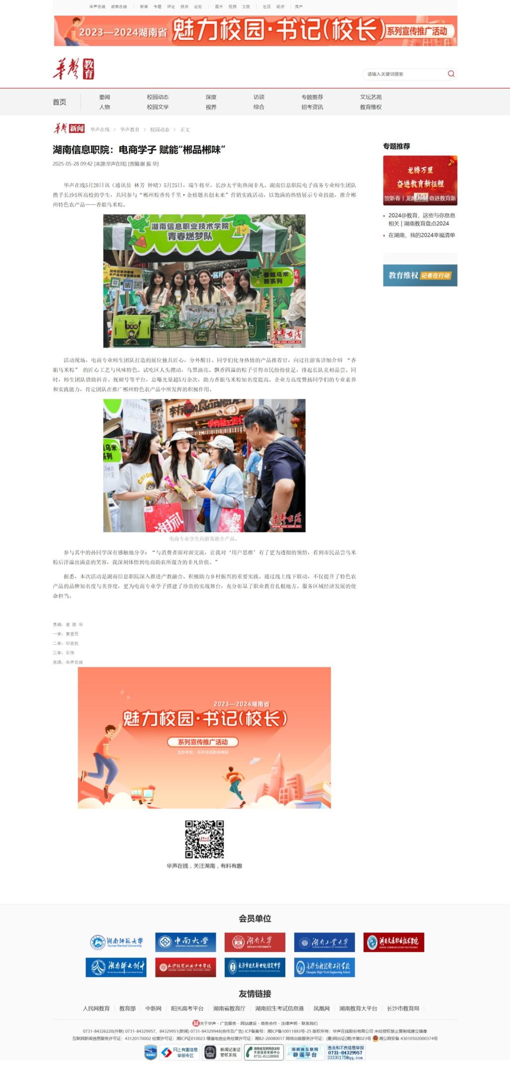 5月28日,华声在线发布《湖南信息职院:电商学子 赋能“郴品郴味”》。