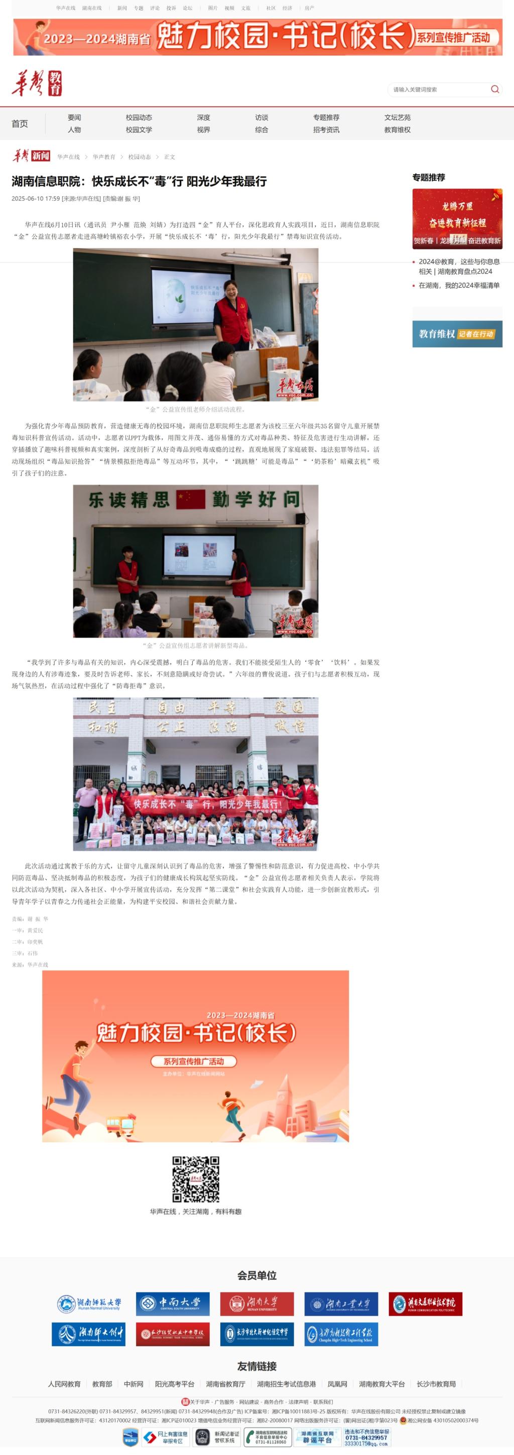 6月10日,华声在线发布《湖南信息职院:快乐成长不“毒”行 阳光少年我最行》