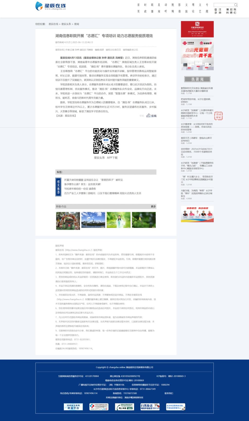 6月13日,星辰在线发布《湖南信息职院开展“志愿汇”专项培训 助力志愿服务提质增效》