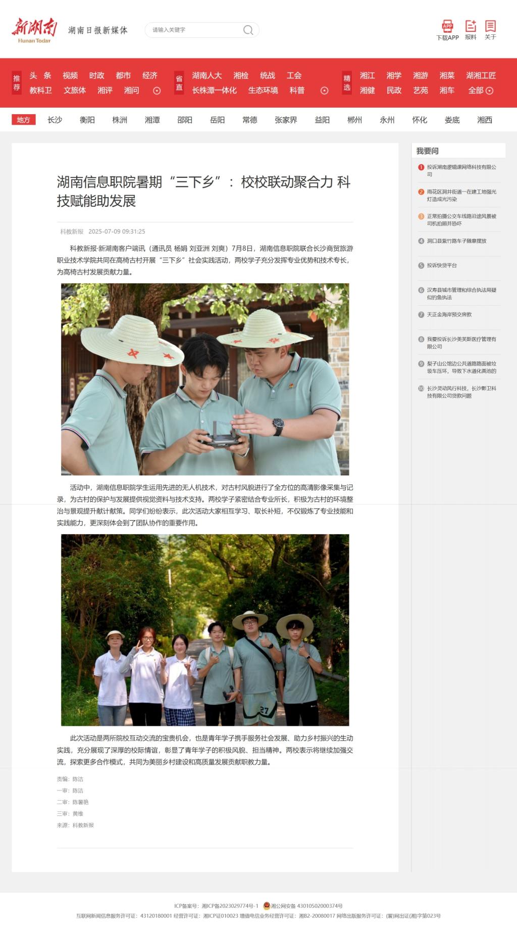 7月9日,新湖南发布《湖南信息职院暑期“三下乡”:校校联动聚合力 科技赋能助发展》