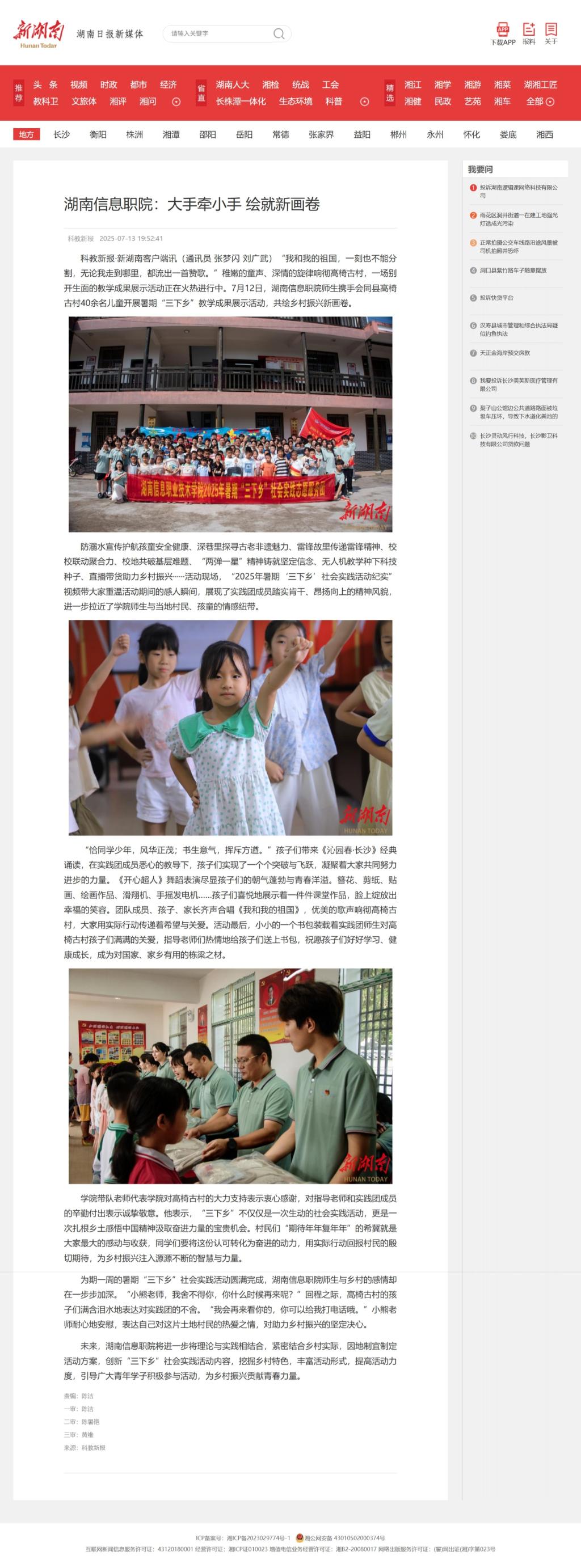 7月13日,新湖南发布《湖南信息职院:大手牵小手 绘就新画卷》