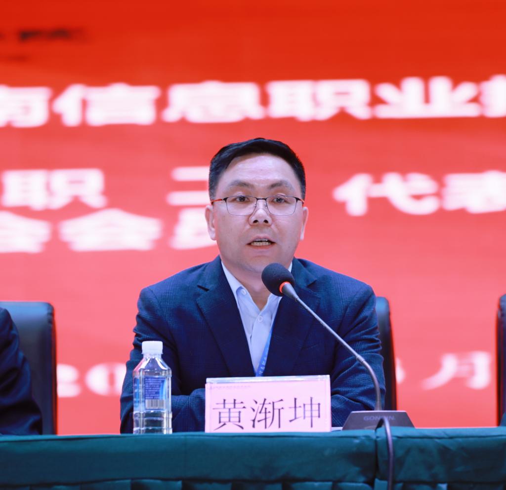 院长陈剑旄主持会议第三阶段并作了题为《从“新一轮创业”到“三大攻坚目标”启航,为建设特色鲜明的地方性应用型高水平院校接续奋斗》的工作报告