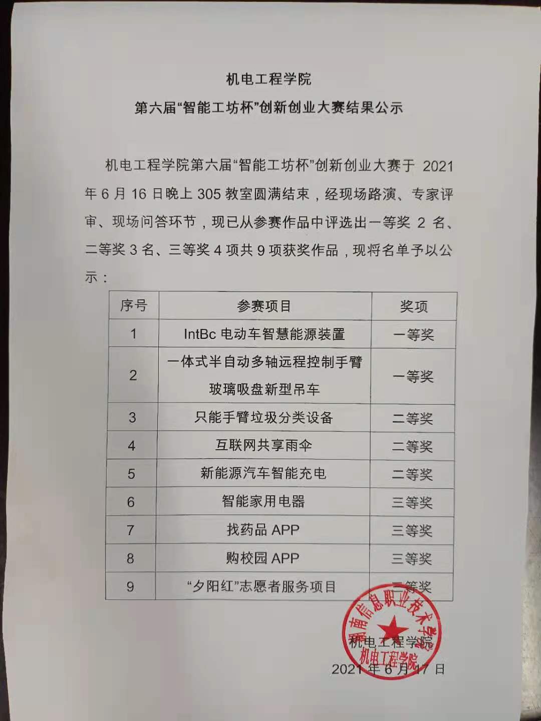 下一条:机电工程学院第六届智能工坊杯创新创业大赛决赛入围名单
