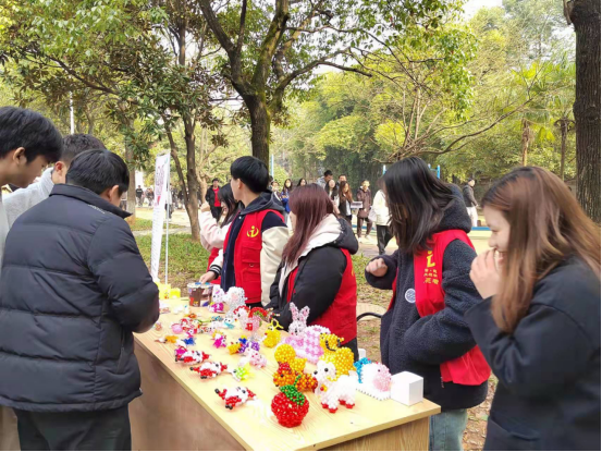 大家配合参加义卖的工作人员迅速布置好摊位,展示手工义卖品,并对过往的师生进行热情的宣传,得到了不少路过的师生的积极响应,不仅有很多同学们积极的购买,更是有许多老师购买到了自己喜欢的手工作品,为残疾人献上了一份自己的爱心,同学们和老师对手工作品的精致和实用纷纷点赞。