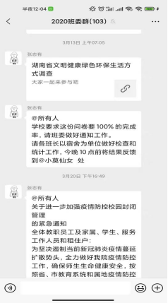 图一 辅导员下发通知 图二 问卷调查完成情况反馈