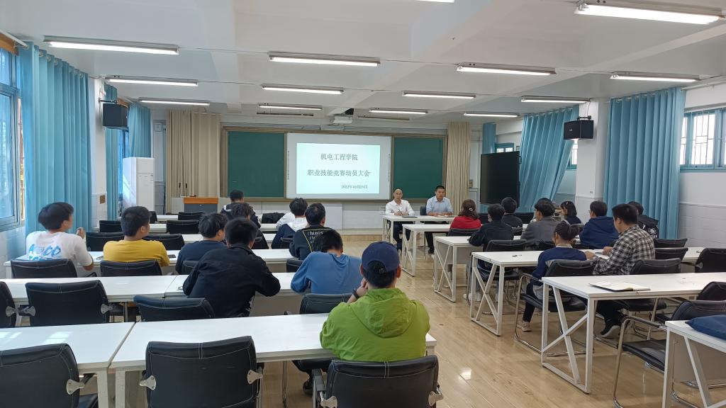10月25日,机电工程学院召开职业技能竞赛动员大会,相关教师和学生参加本次会议,李斌院长、郭纪斌副院长在会议上发言,为参赛队伍排忧解难、加油助威。