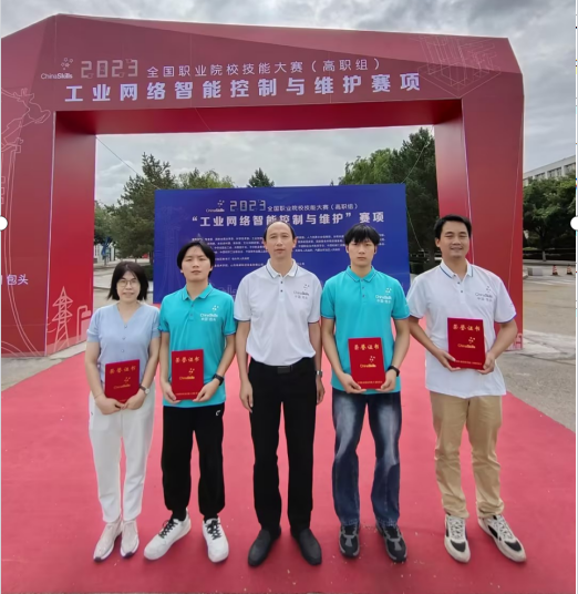 8月16日,2023年全国职业院校技能大赛(高职组)“工业网络智能控制与维护”赛项在包头职业技术学院落下帷幕,机电工程学院选手谷志杰、胡旭,指导教师李颖、刘照,在76支队伍中脱颖而出,荣获国赛二等奖。