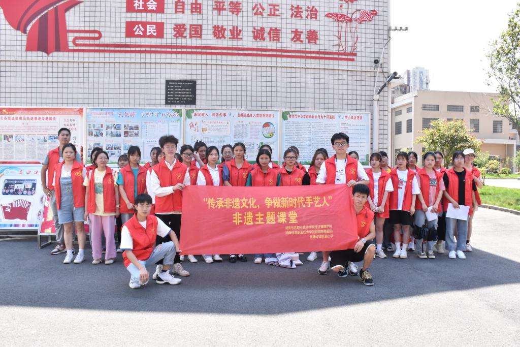 为激发青少年深入学习相关非遗物质文化,提高对于非遗文化的认识,并且从中学习非遗技术,激发对于非遗的热爱。2021年6月7日,beat365官方网站经济管理学院35名学子自发组成志愿服务队,前往望城区高塘岭前进小学进行非遗文化宣传工作。