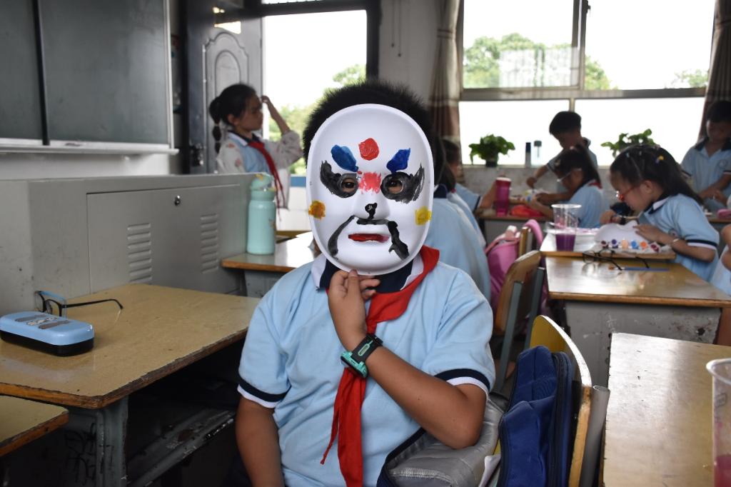 志愿者们分为剪纸、扎染、衍纸、脸谱4支宣传队伍,分别进入了4个班级进行宣讲。160余名小朋友积极参与,表现出对非遗文化的热爱,在青年大学生志愿者指导下,小朋友们制作出了多种多样的艺术作品。