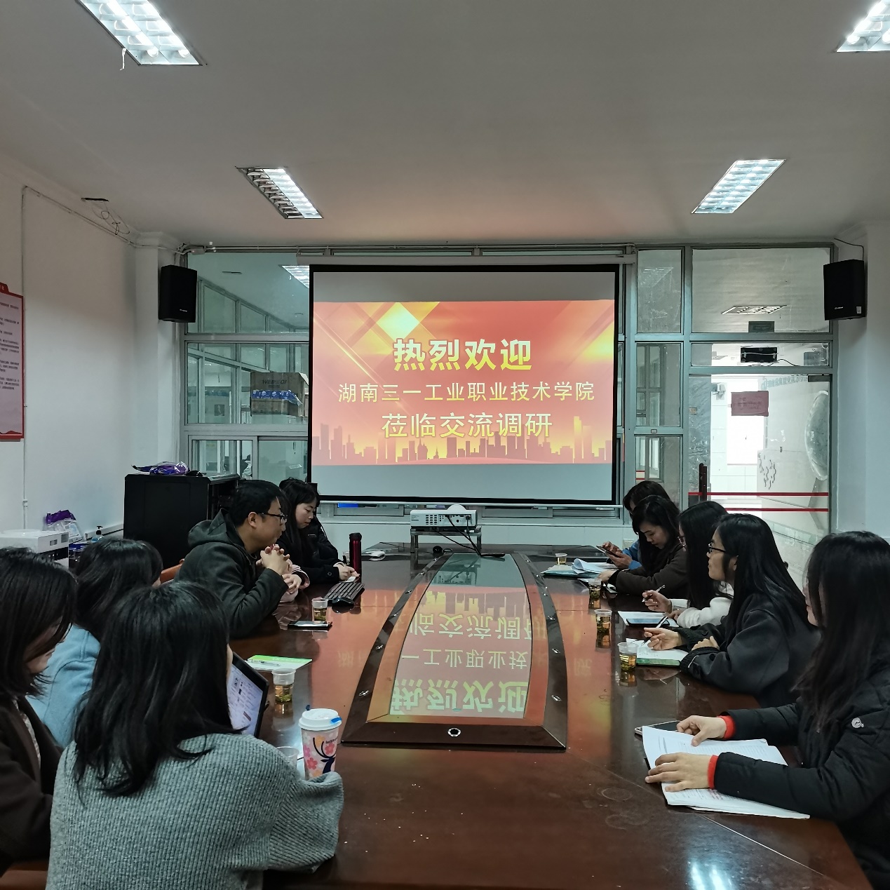 2022年3月2日下午两点,为了能够建设更好的商务英语专业,来自三一集团湖南三一工业职业技术学院英语教研室的张芳芳、王黎、于捷、周佩云四位骨干教师来beat365进行商务英语专业建设交流调研,本次会议由商务语言教研室主任韩颖主持,经济管理学院教学院长张四平出席,彭丽玲、郭婷、鲁琦、王静敏、龙宁曲、李郭文、黎人可等商务英语专业教师参加了交流会。
