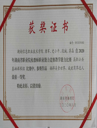 湖南省职业院校教师教学能力比赛二等奖