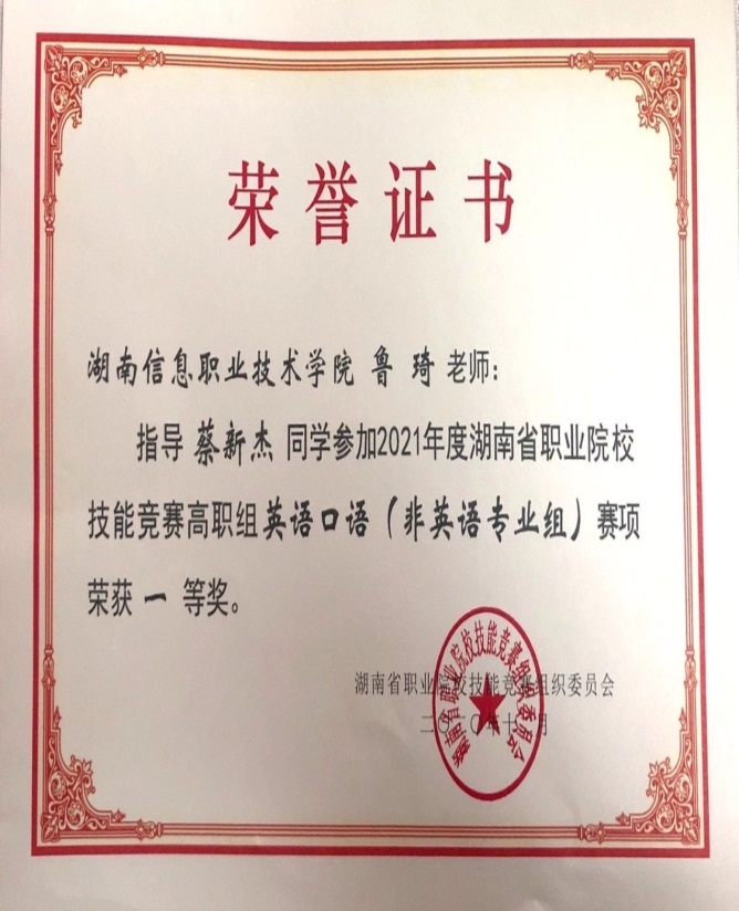 湖南省职业院校英语口语技能竞赛三等奖