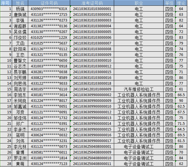 补考批次-20241103职业技能等级认定成绩公示(补考批)