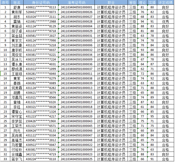 20241103职业技能等级认定合格人员公示(计算机程序设计员)
