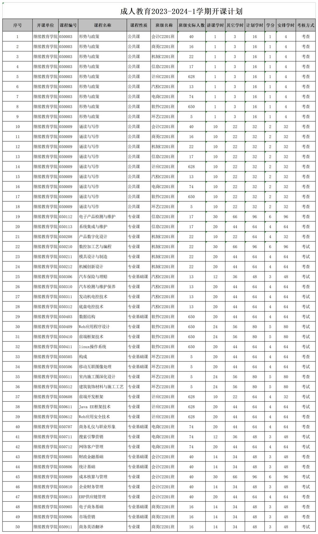 成人教育2023-2024-1学期开课计划