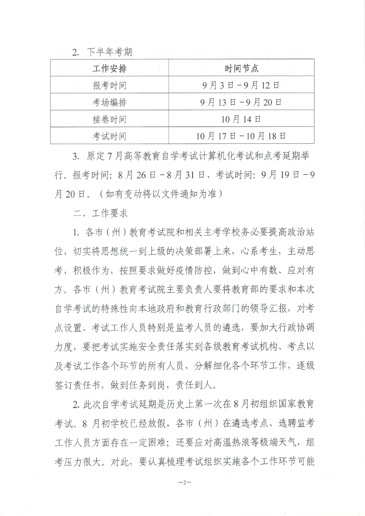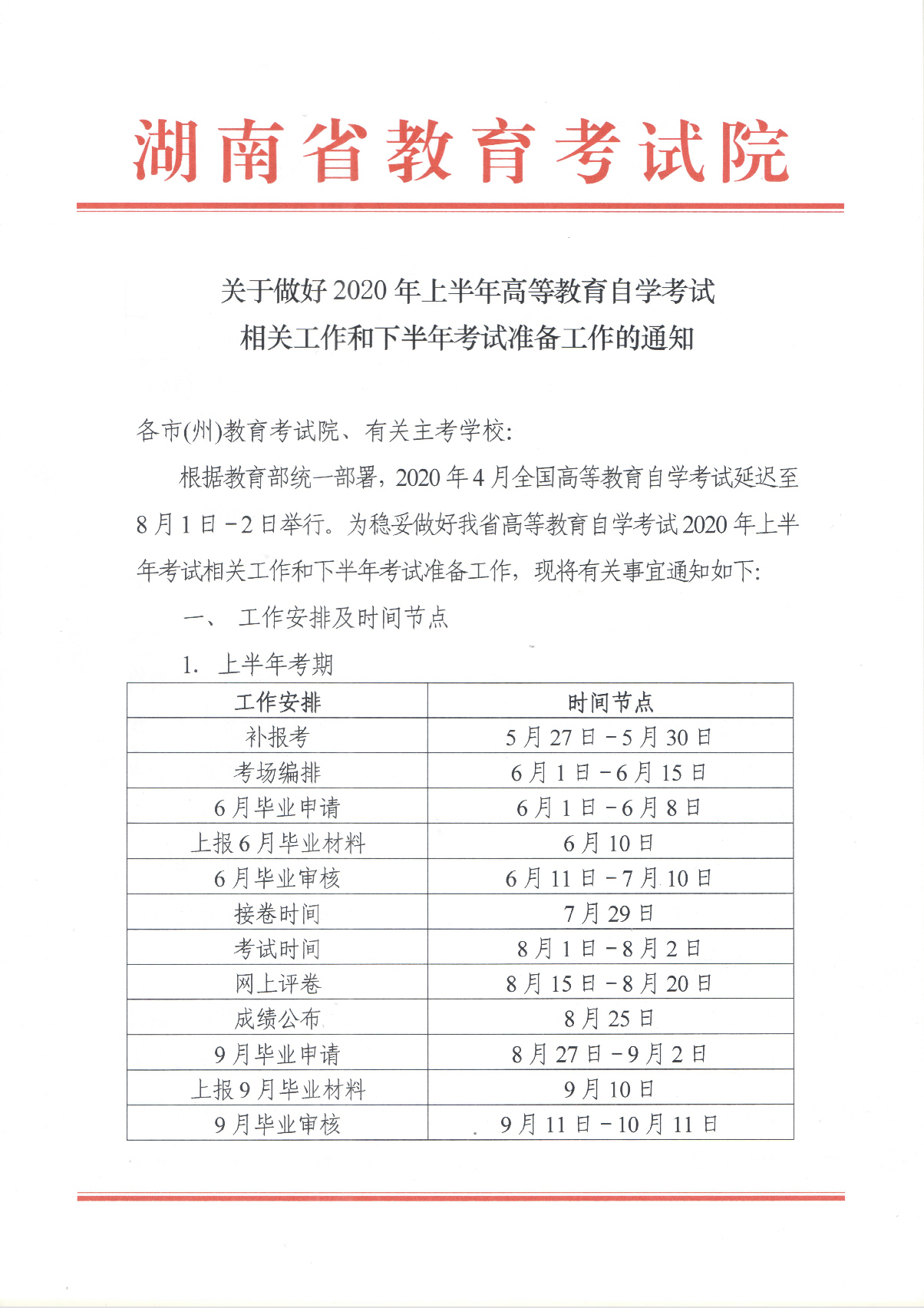 关于做好2020年上半年高等教育自学考试相关工作和下半年考试准备工作的通知