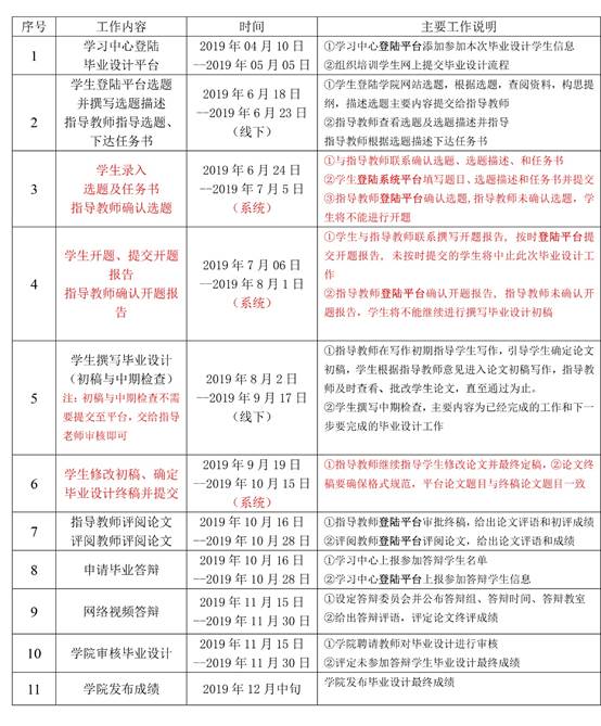 毕业设计(论文)是本科人才培养方案的重要组成部分,是学生在掌握专业知识、技能和平时科研训练基础上所进行的系统、综合的研究、训练活动,是本科阶段学习的最后总结、升华和对本科人才培养质量的全面检验。为做好2019年下半年毕业设计(论文)工作,进一步提高我学习中心毕业设计(论文)水平和人才培养质量,现将有关事项通知如下: